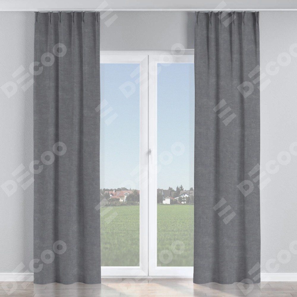 Комплект прямых штор, от производителя «Cortin», пошиты из ткани канвас стальной, артикул ткани v-1082. С изнаночной стороны в верхней части штор пристрачивается шторная лента с декоративными складками «Кустик». Для создания элегантных складок прямые шторы шьются по стандарту с коэффициентом 1:2 (на 100 см. ширины проёма 200 см. ширины ткани).