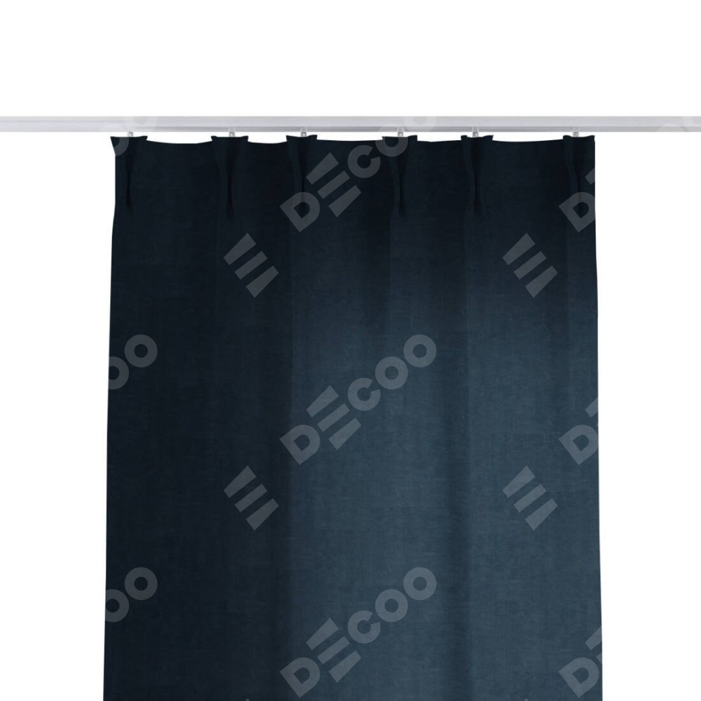 Комплект прямых штор, от производителя «Cortin», пошиты из ткани канвас тёмно-синий, артикул ткани v-206. С изнаночной стороны в верхней части штор пристрачивается шторная лента с декоративными складками «Кустик». Для создания элегантных складок прямые шторы шьются по стандарту с коэффициентом 1:2 (на 100 см. ширины проёма 200 см. ширины ткани).