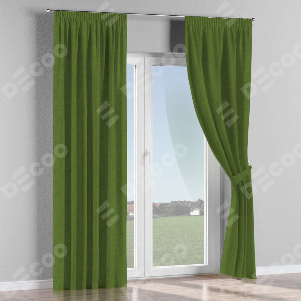 Комплект прямых штор, от производителя «Cortin», пошиты из ткани канвас трава, артикул ткани v-473. С изнаночной стороны в верхней части штор пристрачивается шторная лента с декоративными складками «Карандаш». Для создания элегантных складок прямые шторы шьются по стандарту с коэффициентом 1:2 (на 100 см. ширины проёма 200 см. ширины ткани).