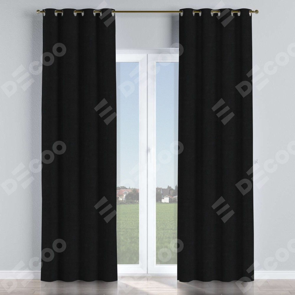 Комплект прямых штор, от производителя «Cortin», пошиты из ткани канвас черный, артикул ткани v-194. Данная модель пошита на люверсах, комплектуется на выбор круглым карнизом и подходит для монтажа на стену или потолок. Прямые шторы на люверсах шьются по стандарту с коэффициентом 1/2 (на 100 см. ширины проёма 200 см. ширины ткани), отличительным преимуществом данной модели является простой способ монтажа. Достаточно повесить ее на трубу и штора готова!