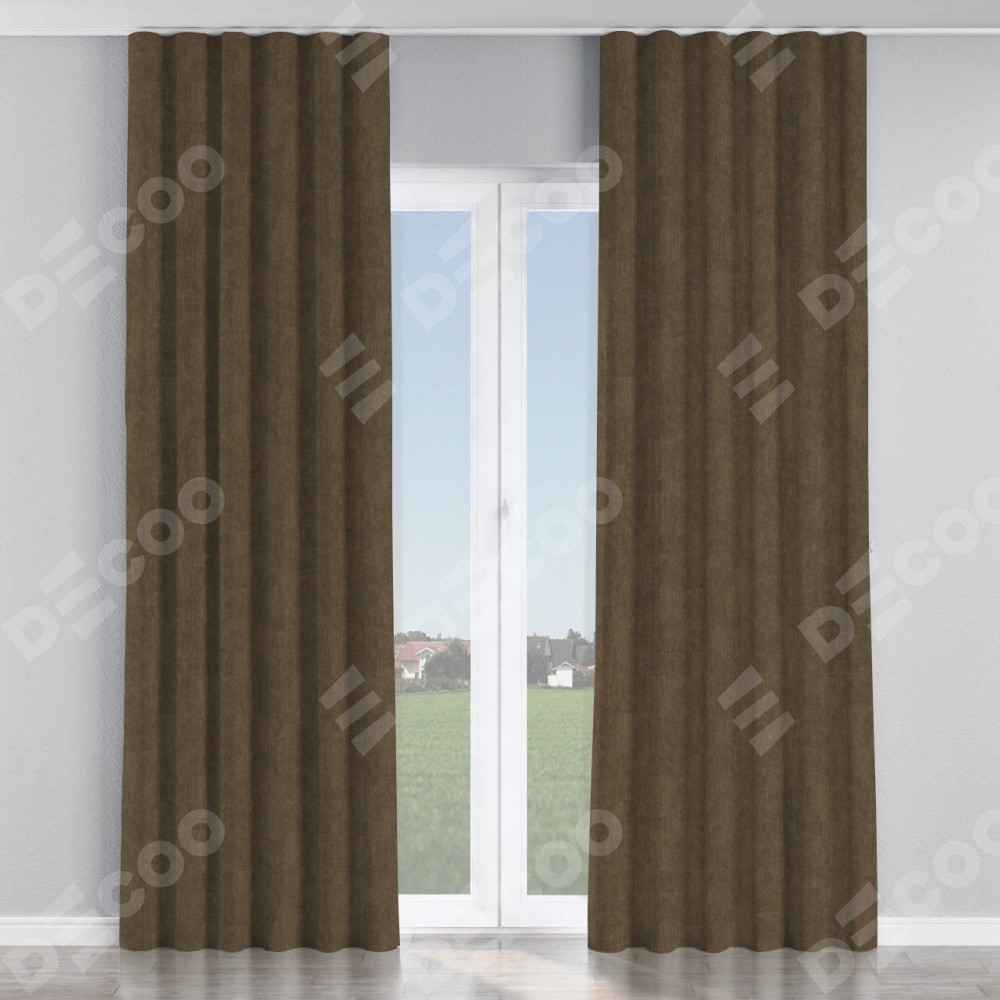 Комплект прямых штор, от производителя «Cortin», пошиты из ткани канвас шоколадный, артикул ткани v-193. С изнаночной стороны в верхней части штор пристрачивается шторная лента с декоративными складками «Волна». Для создания элегантных складок прямые шторы шьются по стандарту с коэффициентом 1:2 (на 100 см. ширины проёма 200 см. ширины ткани).