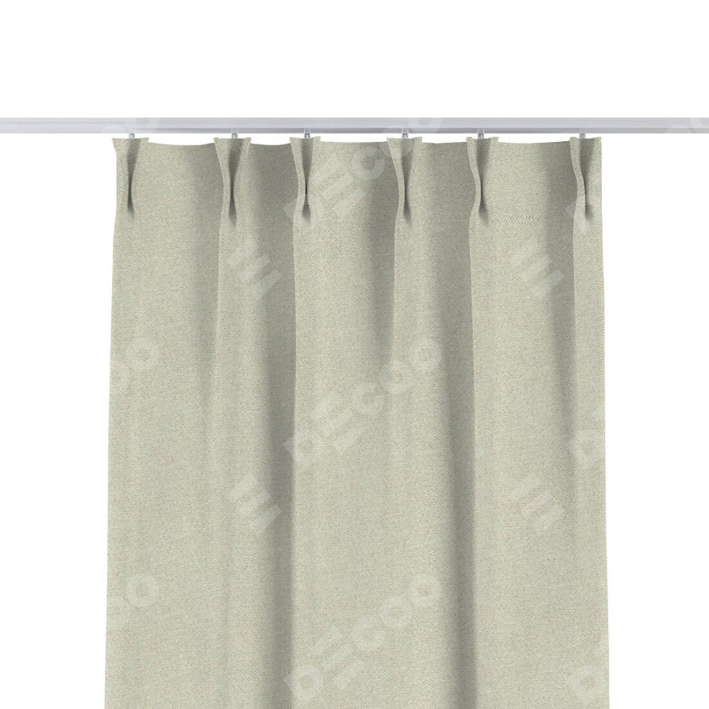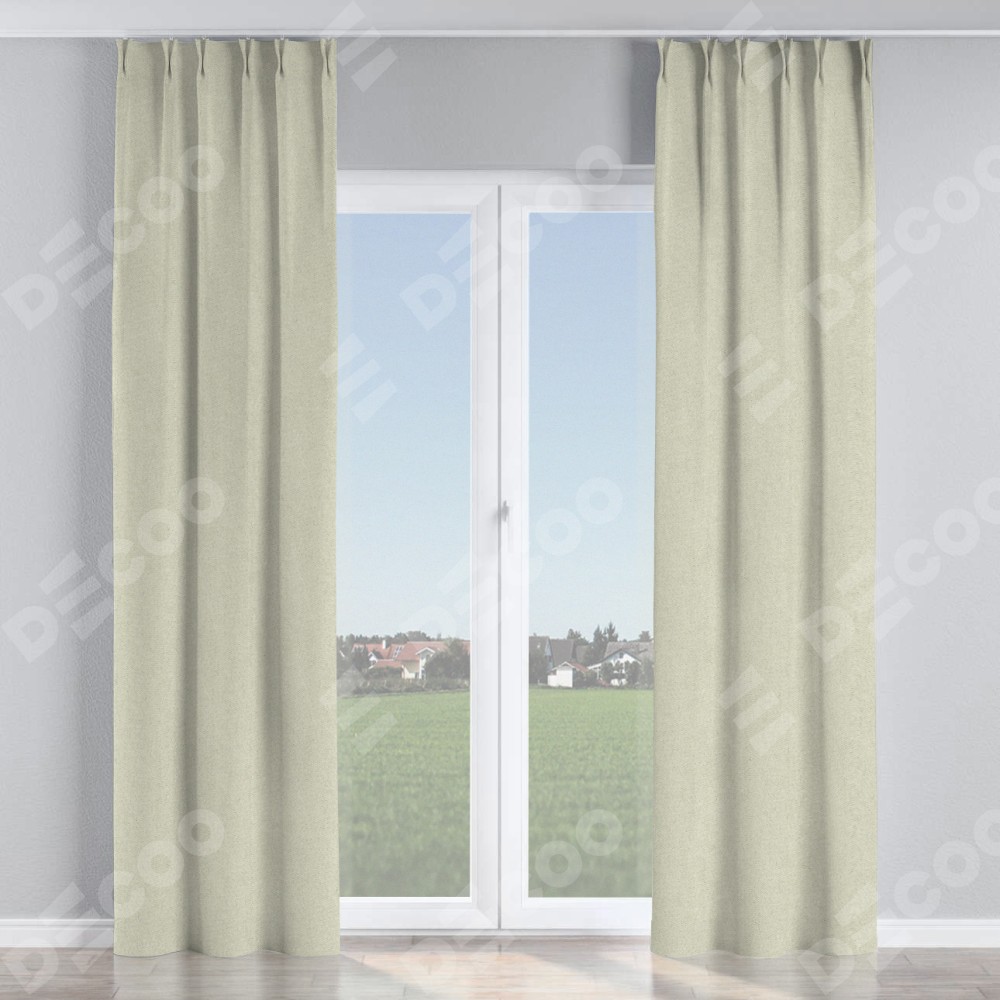 Комплект прямых штор, от производителя «Cortin», пошиты из ткани твид блэкаут шампань, артикул ткани 90929. С изнаночной стороны в верхней части штор пристрачивается шторная лента с декоративными складками «Кустик». Для создания элегантных складок прямые шторы шьются по стандарту с коэффициентом 1:2 (на 100 см. ширины проёма 200 см. ширины ткани).