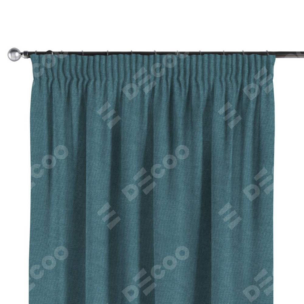 Комплект прямых штор, от производителя «Cortin», пошиты из ткани лён димаут светло-синий, артикул ткани 91007. С изнаночной стороны в верхней части штор пристрачивается шторная лента с декоративными складками «Карандаш». Для создания элегантных складок прямые шторы шьются по стандарту с коэффициентом 1:2 (на 100 см. ширины проёма 200 см. ширины ткани).