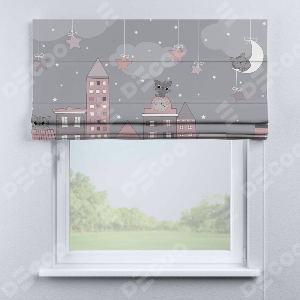 Римская штора производителя «Cortin», используется для проёма, пошита из ткани блэкаут с нанесением сублимационной печати «Вечерний город». Имеет универсальный механизм и подходит для монтажа: на потолок, на стену и в нишу.