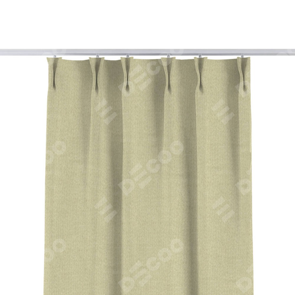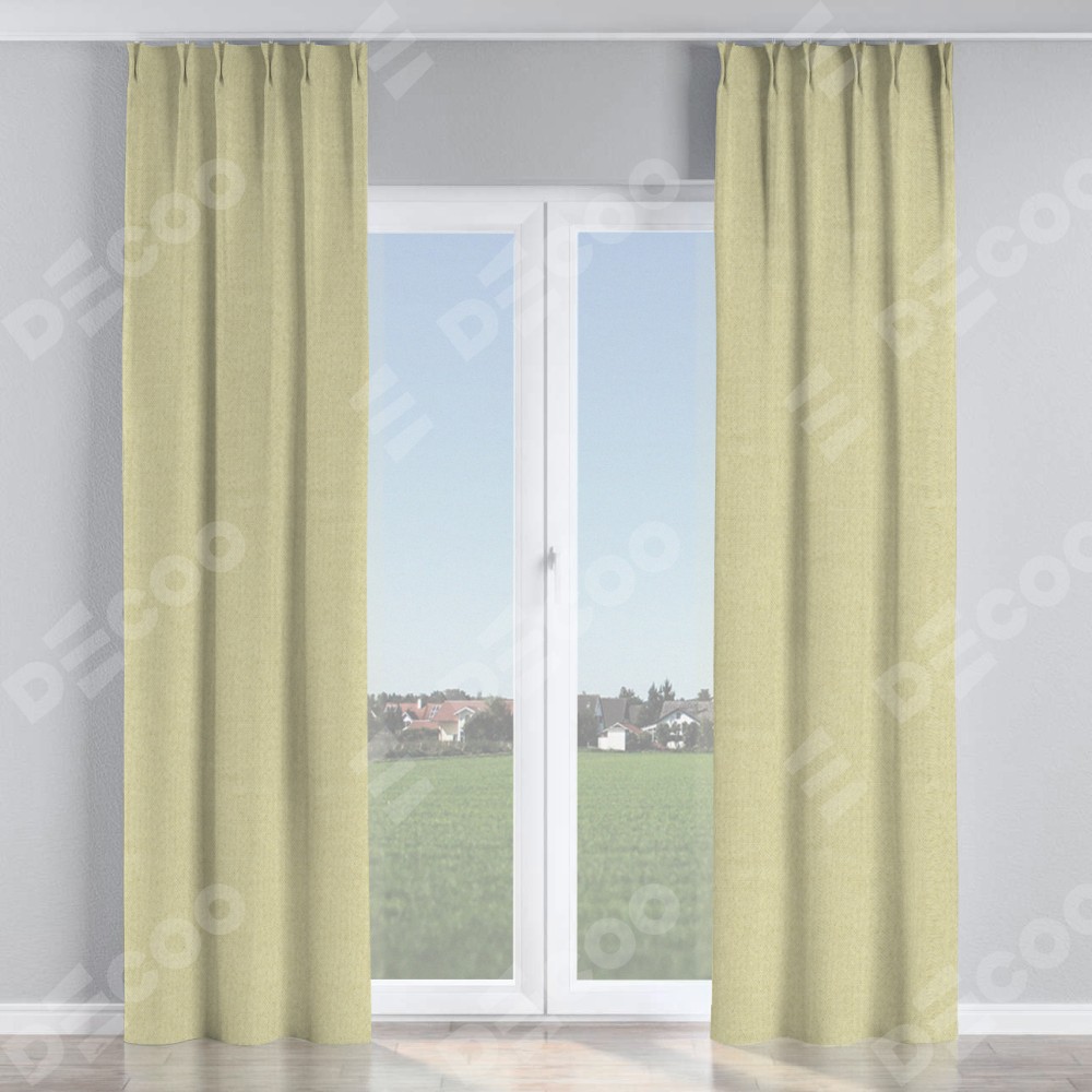 Комплект прямых штор, от производителя «Cortin», пошиты из ткани лён димаут шампань, артикул ткани 90994. С изнаночной стороны в верхней части штор пристрачивается шторная лента с декоративными складками «Кустик». Для создания элегантных складок прямые шторы шьются по стандарту с коэффициентом 1:2 (на 100 см. ширины проёма 200 см. ширины ткани).