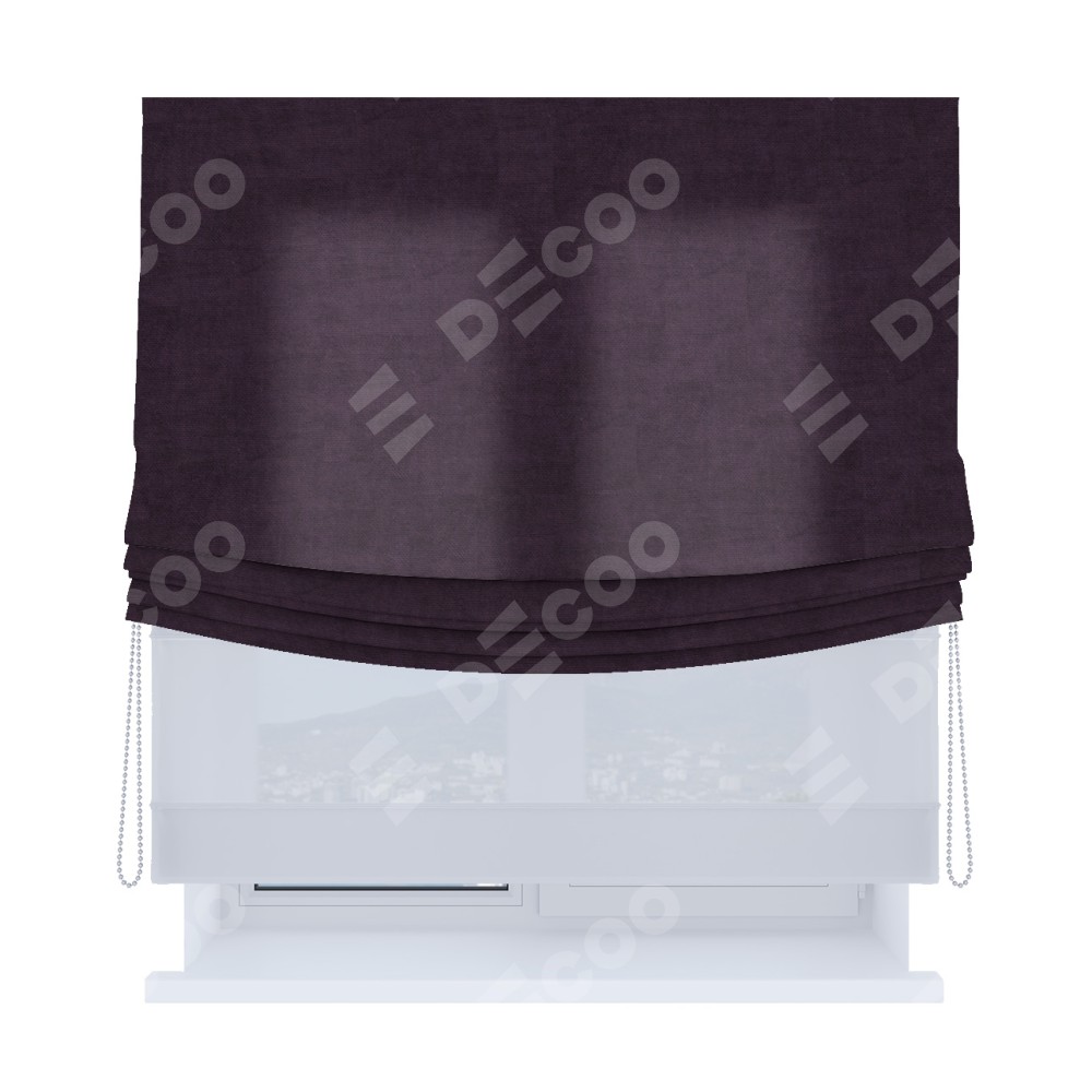 Римская штора «Кортин», вельвет тёмно-фиолетовый, день-ночь с мягкими складками