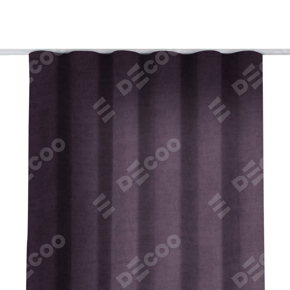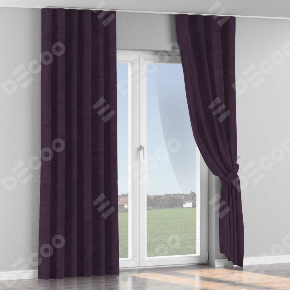 Комплект прямых штор, от производителя «Cortin», пошиты из ткани вельвет тёмно-фиолетовый, артикул ткани 72403. С изнаночной стороны в верхней части штор пристрачивается шторная лента с декоративными складками «Волна». Для создания элегантных складок прямые шторы шьются по стандарту с коэффициентом 1:2 (на 100 см. ширины проёма 200 см. ширины ткани).