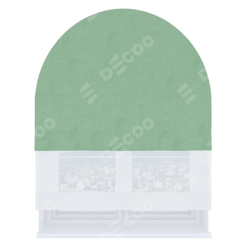 Римская штора день-ночь производителя «Cortin», используется для арочного проёма, пошита из двух полотен, с лицевой стороны блэкаут однотонный ментоловый артикул 91572−1, вторая ткань тюль (по стандарту комплектуется тюль белого цвета артикул V-01). Штора шьётся по индивидуальным размерам, для данного типа римской шторы возможная ширина от 60 до 300 см. Удобное управление каждой шторой отдельно.