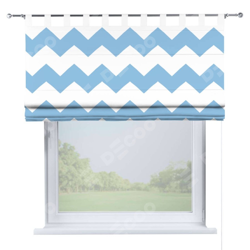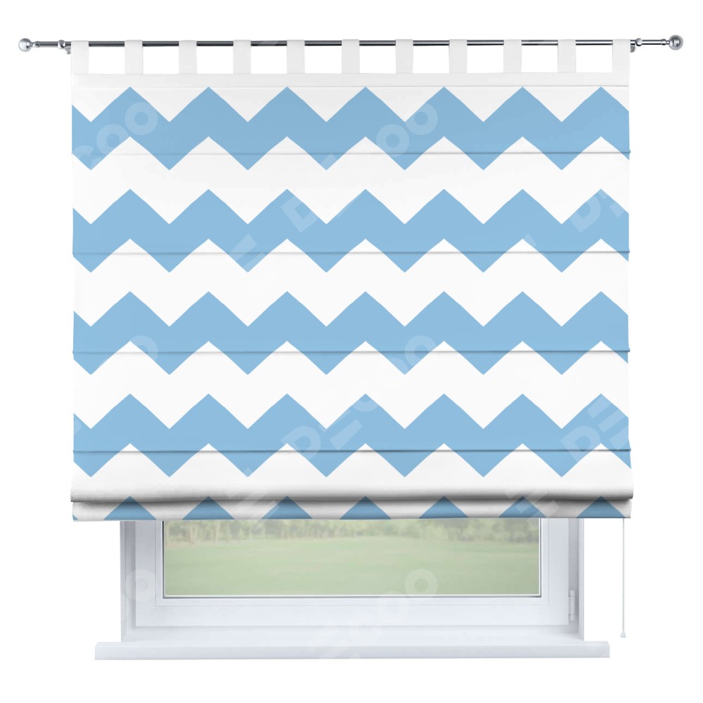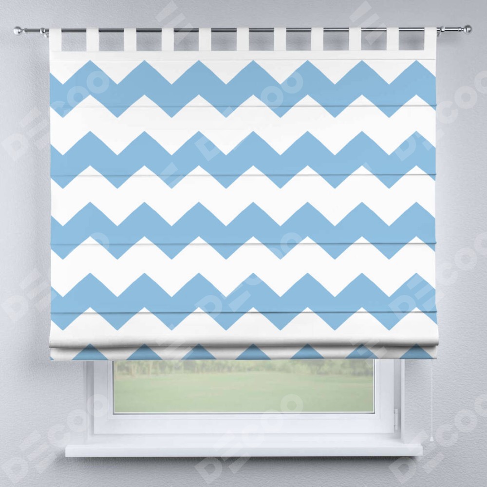 Римская штора производителя «Cortin», используется для проёма, пошита из ткани блэкаут с нанесением сублимационной печати «Зигзаг крупный». Данная модель пошита на петлях, комплектуется на выбор круглым карнизом и подходит для монтажа на стену. Римская штора на петлях имеет простую систему регулировки высоты, отличительным преимуществом данной модели является простой способ монтажа. Достаточно повесить ее на трубу и штора готова!