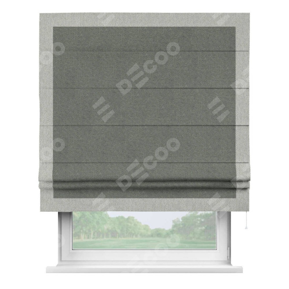 Римская штора «Кортин» с кантом Чесс, для проема, ткань лён димаут, тёмно-серый