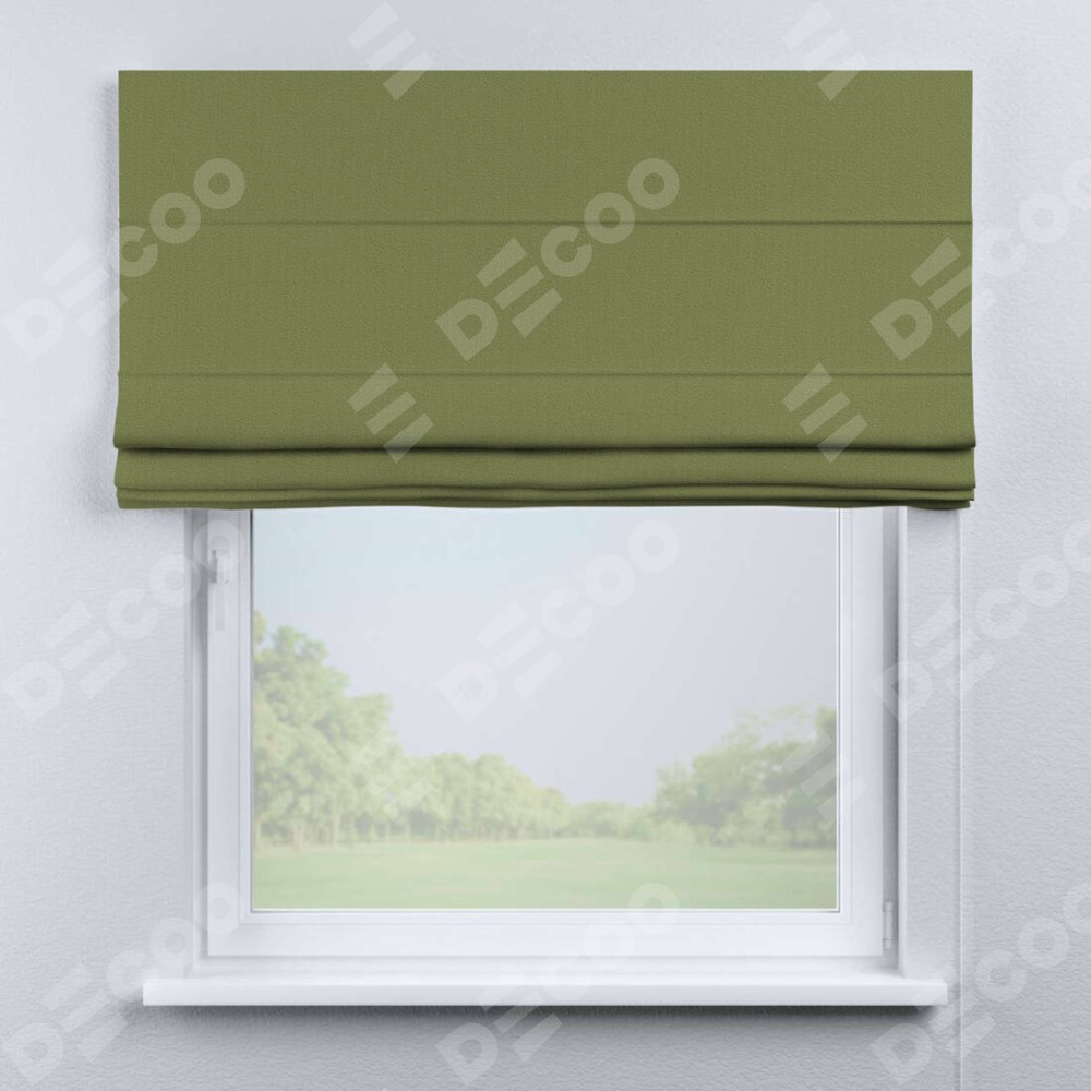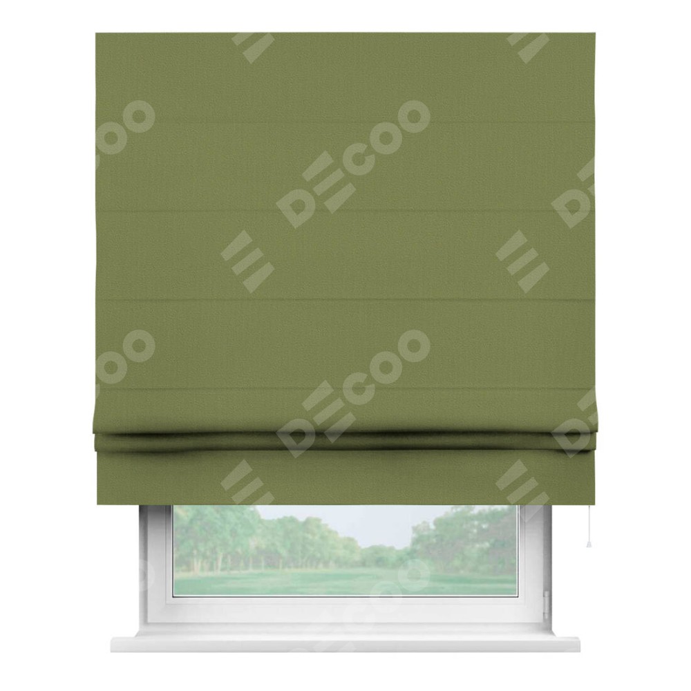 Классическая римская штора производителя «Cortin», пошита из ткани бархат золотая оливка, артикул: 90725. Имеет универсальный механизм и подходит для монтажа: на потолок, на стену и в нишу.