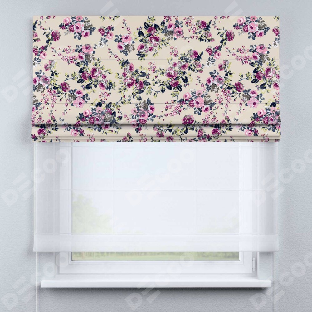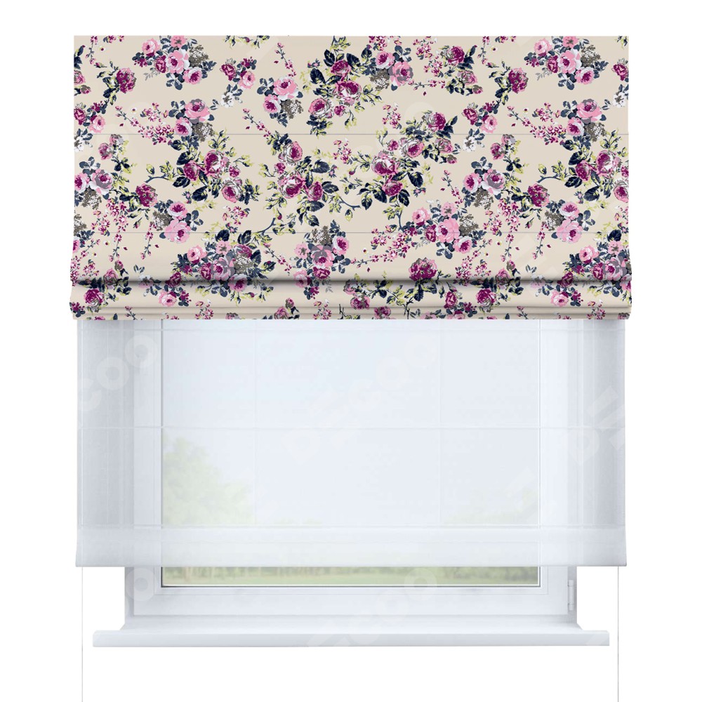 Римская штора «Кортин» день-ночь «Россыпь розовых цветов»