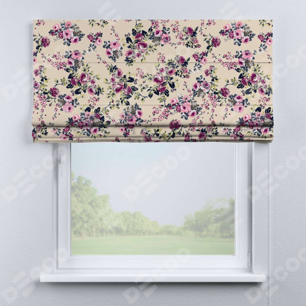 Римская штора «Кортин» для проема «Россыпь розовых цветов»