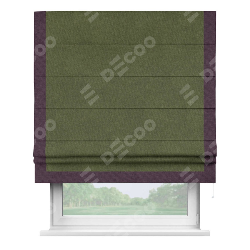 Римская штора «Кортин» для проема, лён димаут салатовый с кантом Виктория