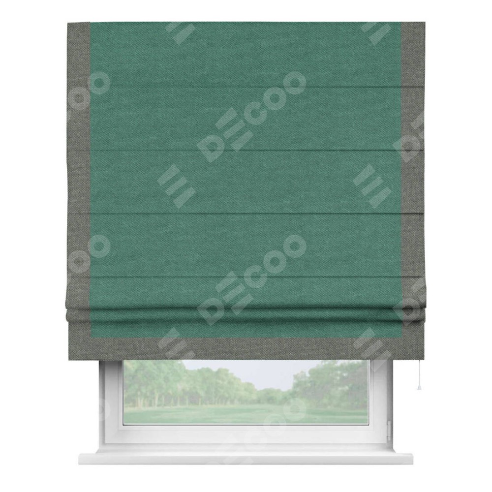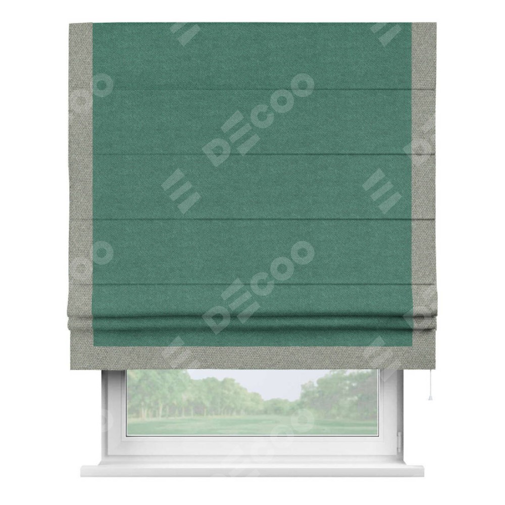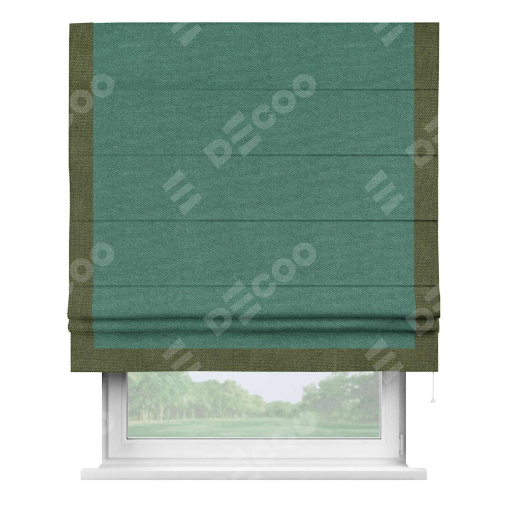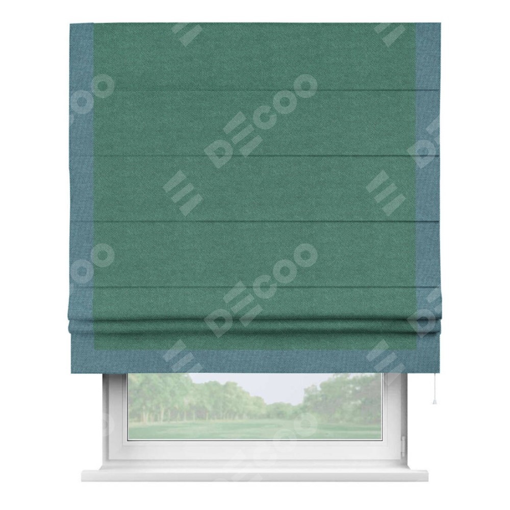 Римская штора «Кортин» для проема, лён димаут светло-бирюзовый с кантом Виктория