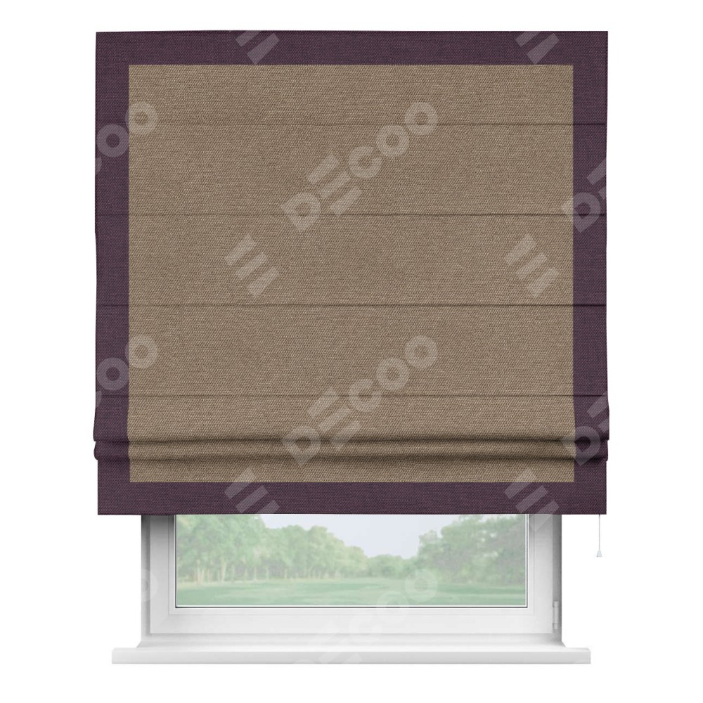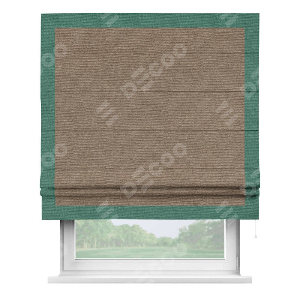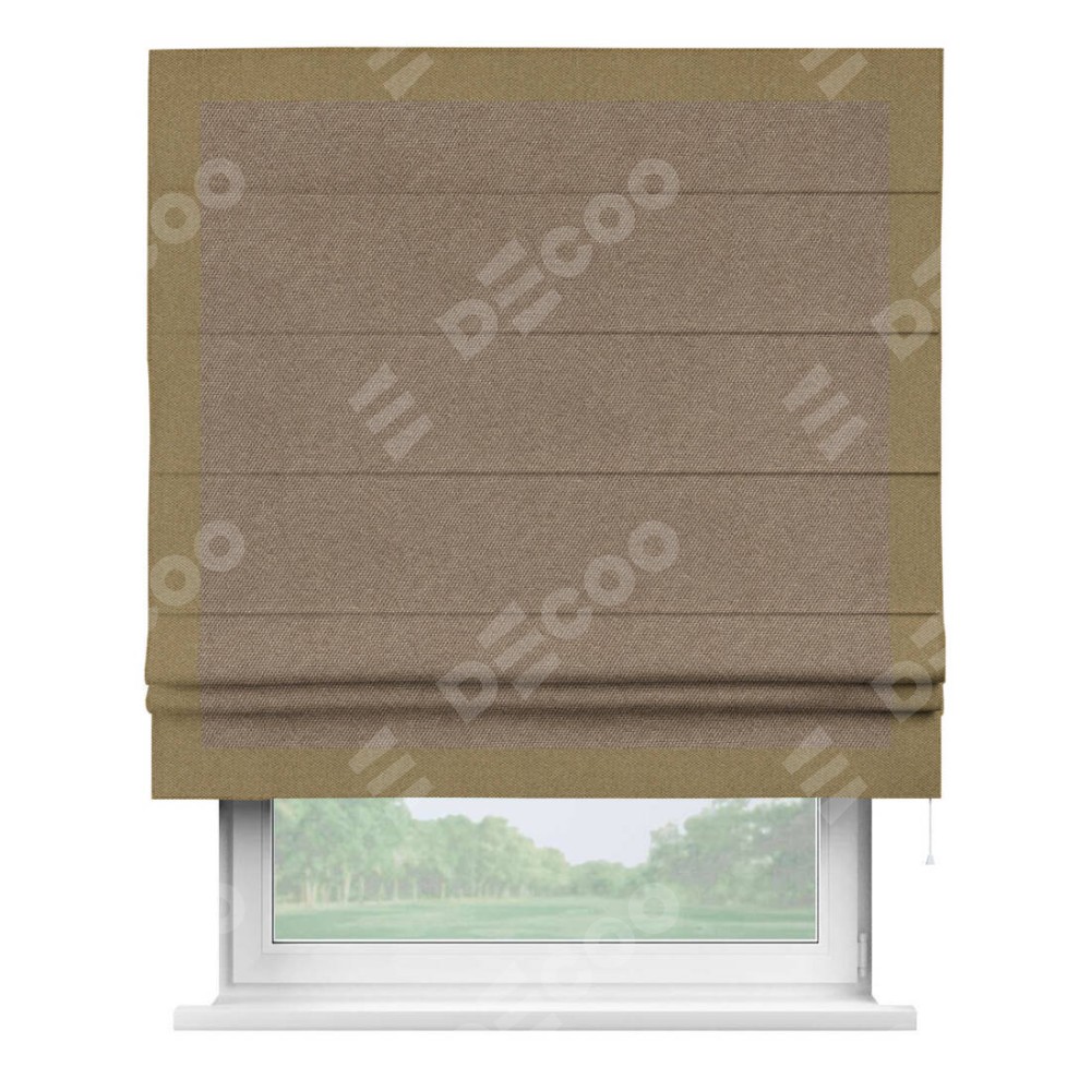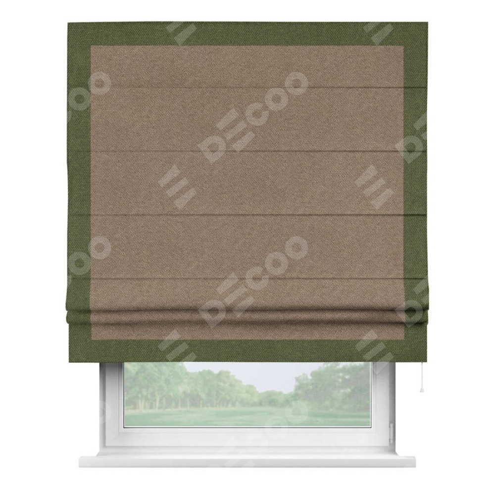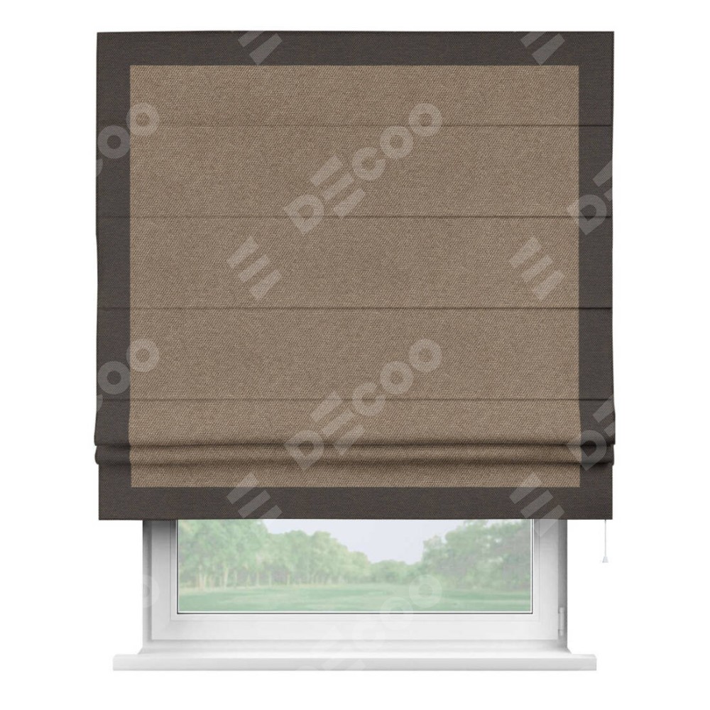 Римская штора «Кортин» для проема, лён димаут коричневый с кантом Чесс