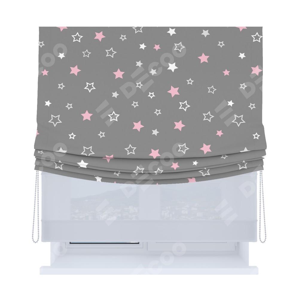 Римская штора «Кортин», день-ночь с мягкими складками, «Розовый звездопад»