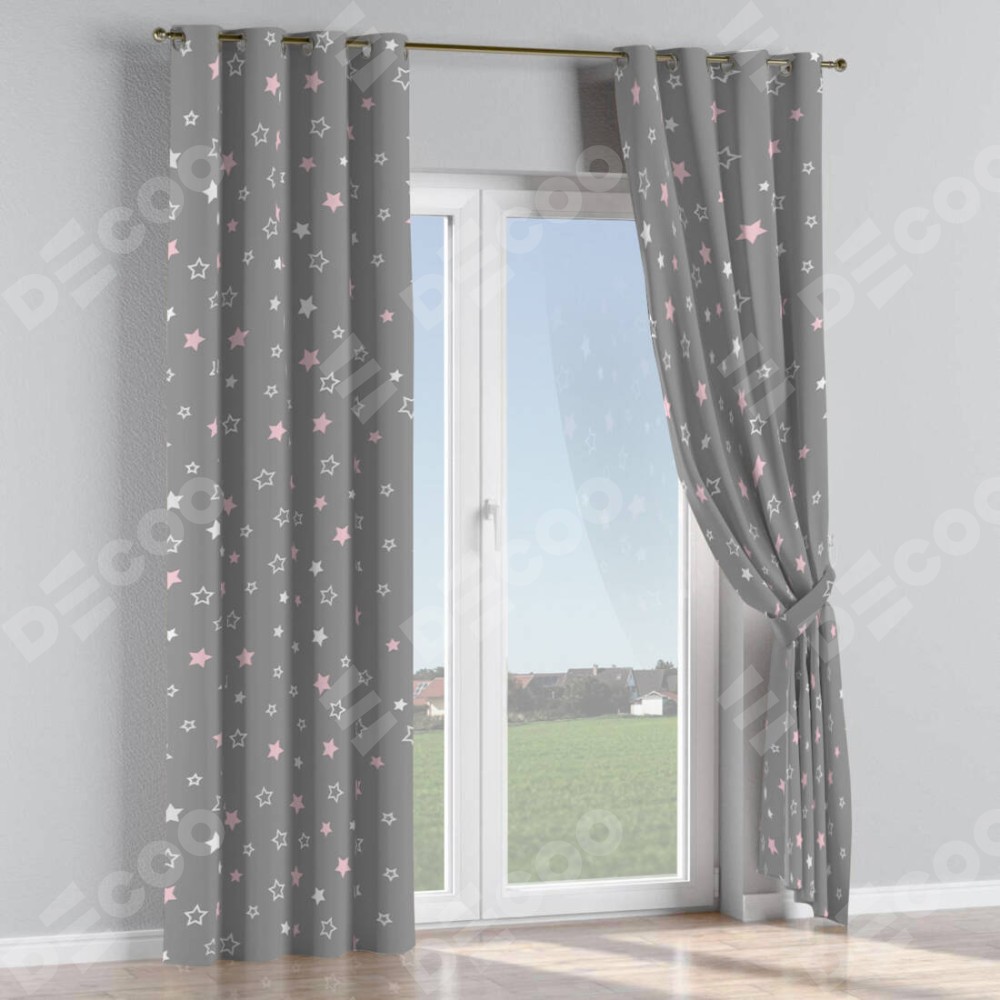Комплект прямых штор, от производителя «Cortin», пошиты из ткани блэкаут с нанесением сублимационной печати «Розовый звездопад». Данная модель пошита на люверсах, комплектуется на выбор круглым карнизом и подходит для монтажа на стену или потолок. Прямые шторы на люверсах шьются по стандарту с коэффициентом 1/2 (на 100 см. ширины проёма 200 см. ширины ткани), отличительным преимуществом данной модели является простой способ монтажа. Достаточно повесить ее на трубу и штора готова!