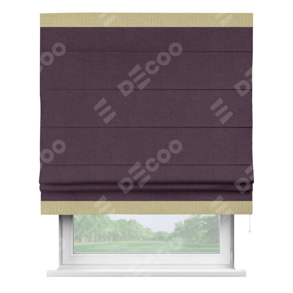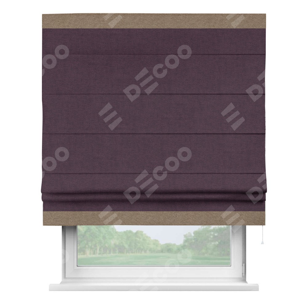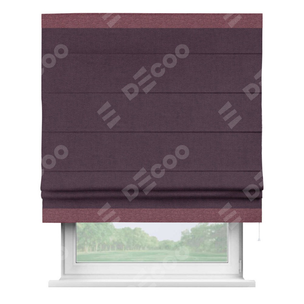 Римская штора «Кортин» для проема, лён димаут фиолетовый с кантом Горизонт