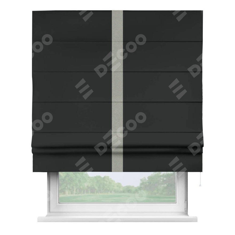 Римская штора «Кортин» для проема, блэкаут однотонный черный с кантом Хайвэй