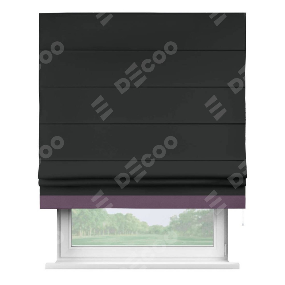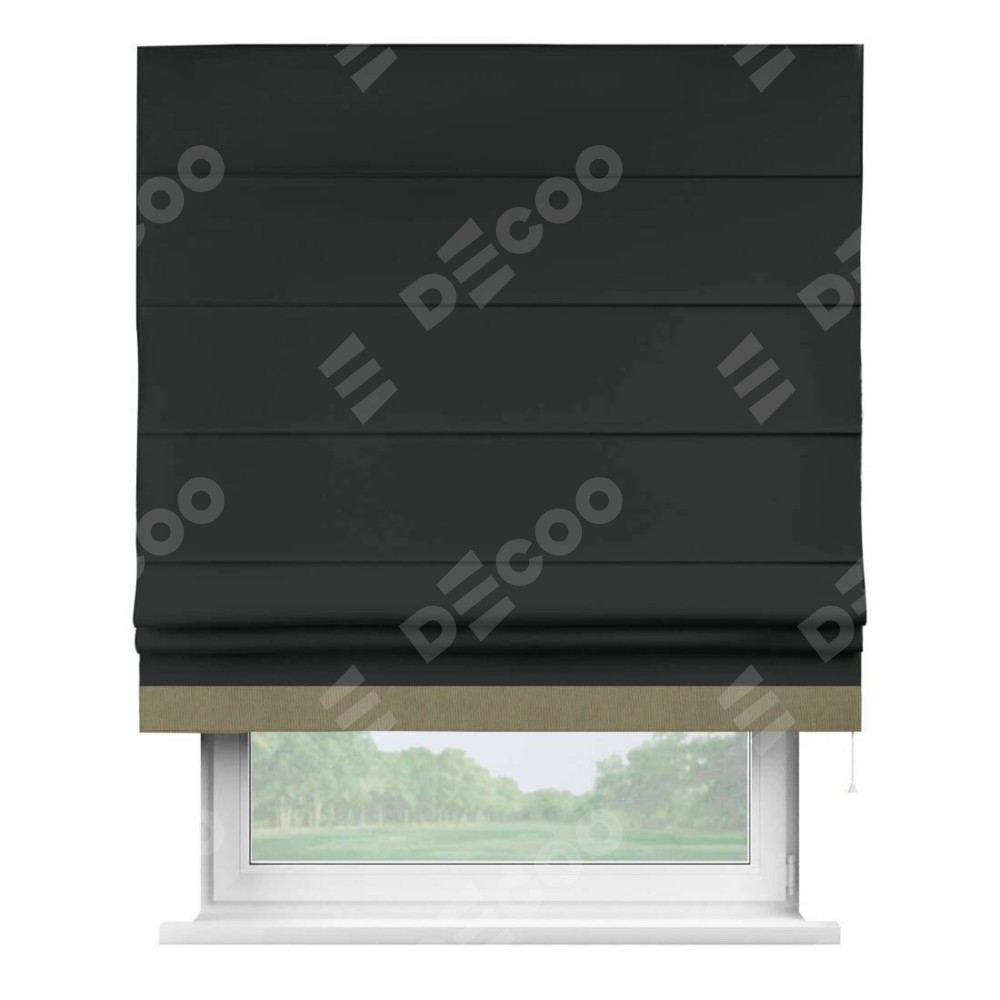 Римская штора «Кортин» для проема, блэкаут однотонный черный с кантом Джестер
