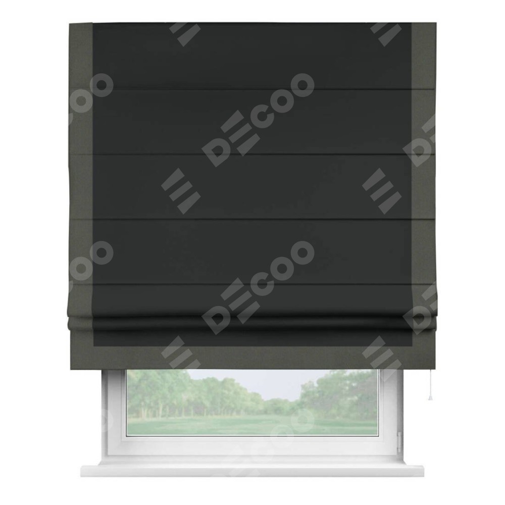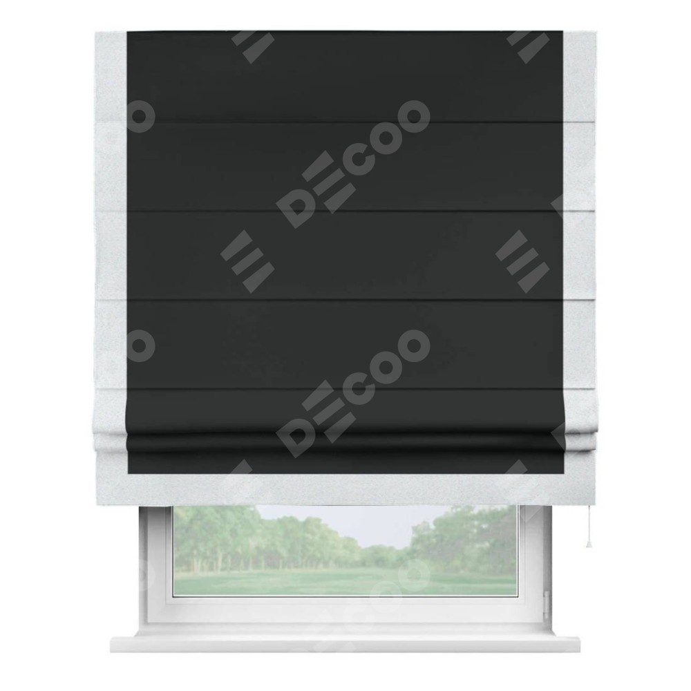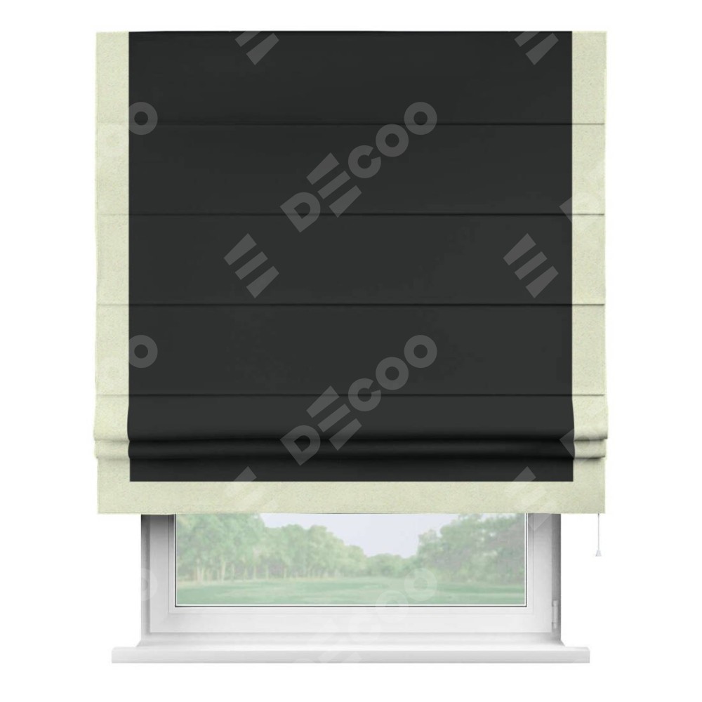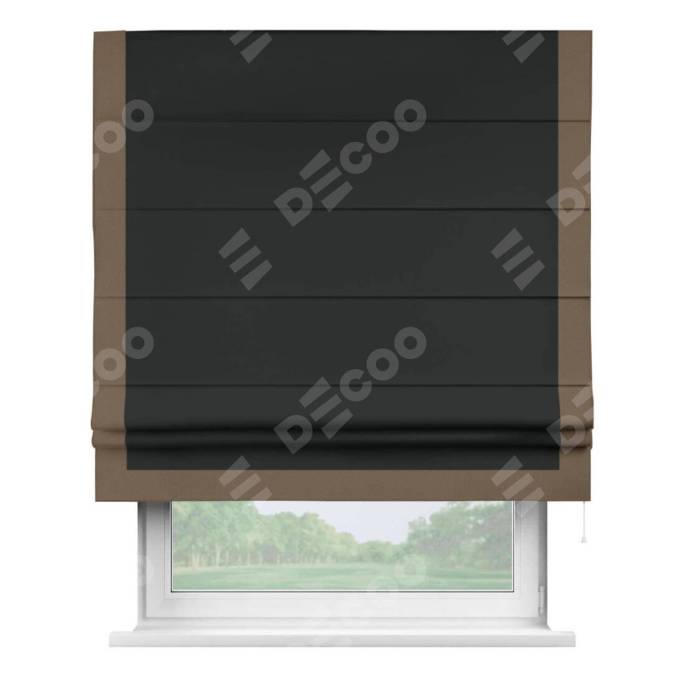 Римская штора производителя «Cortin», используется для проёма, пошита из ткани блэкаут однотонный черный, артикул ткани 91571−2. Отделка шторы кантом «Виктория», ткань для канта используется из блэкаута однотонного разной расцветки на выбор. Имеет универсальный механизм и подходит для монтажа: на потолок, на стену и в нишу.