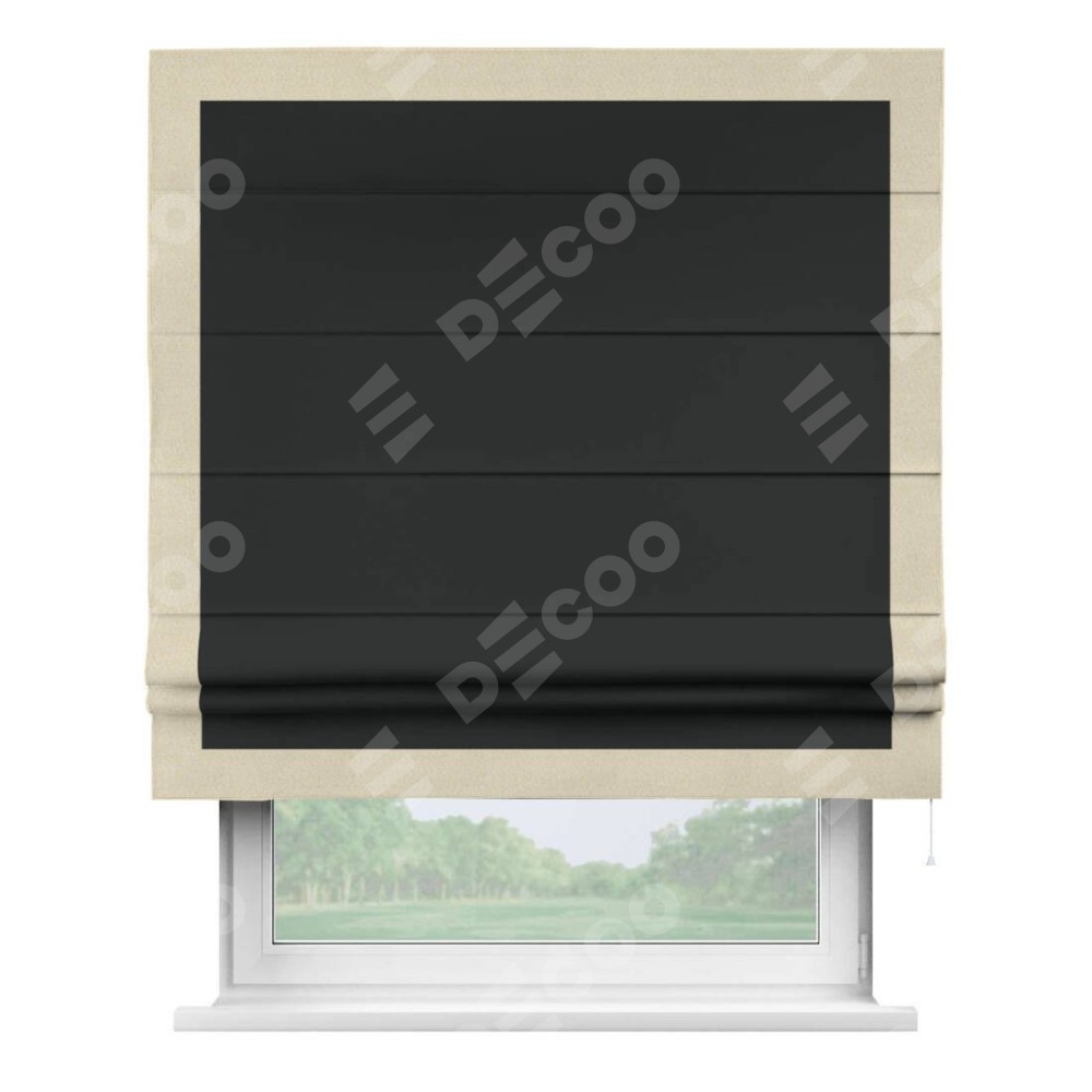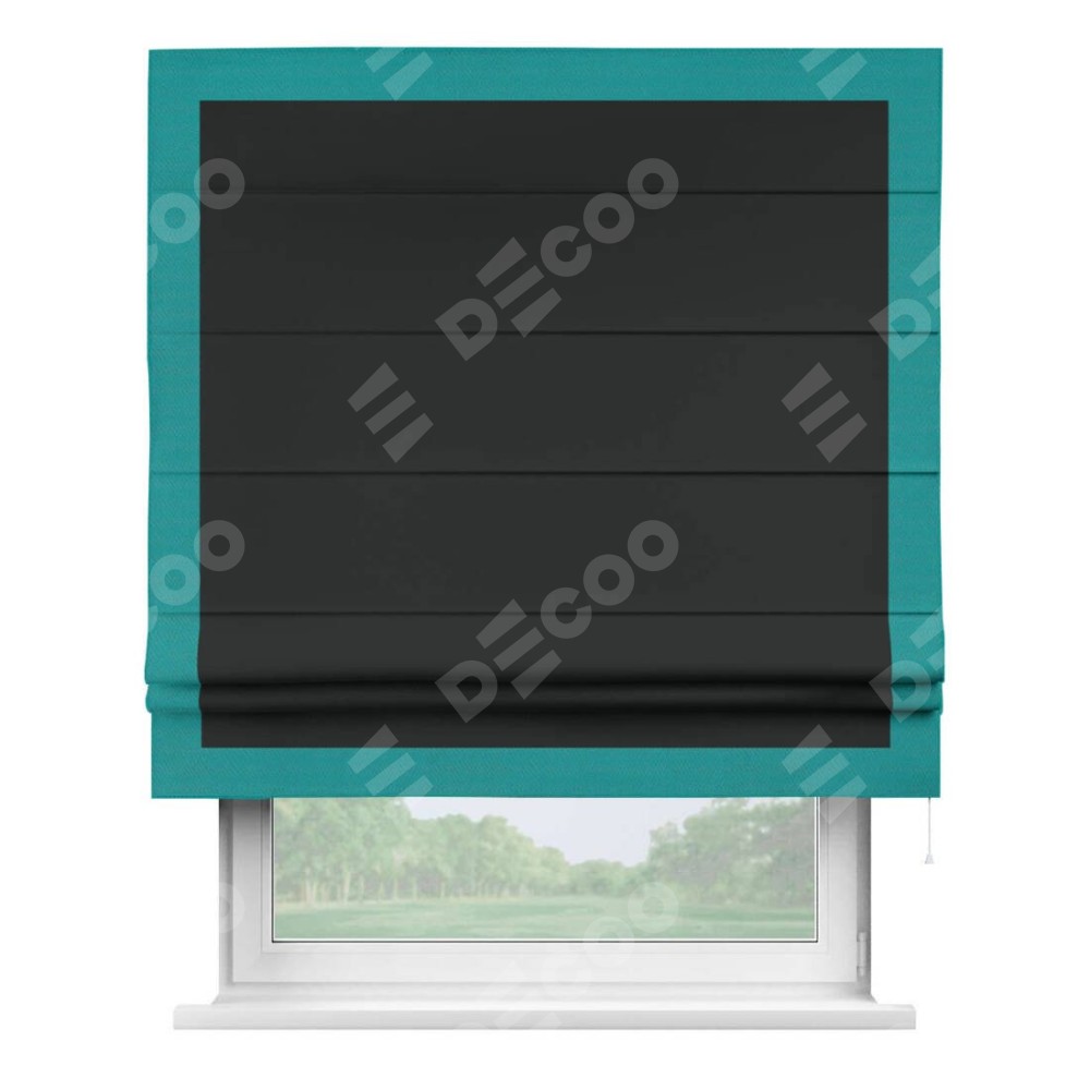 Римская штора «Кортин» для проема, блэкаут однотонный черный с кантом Чесс