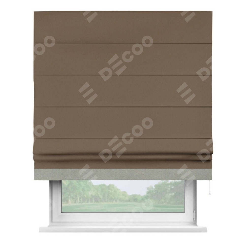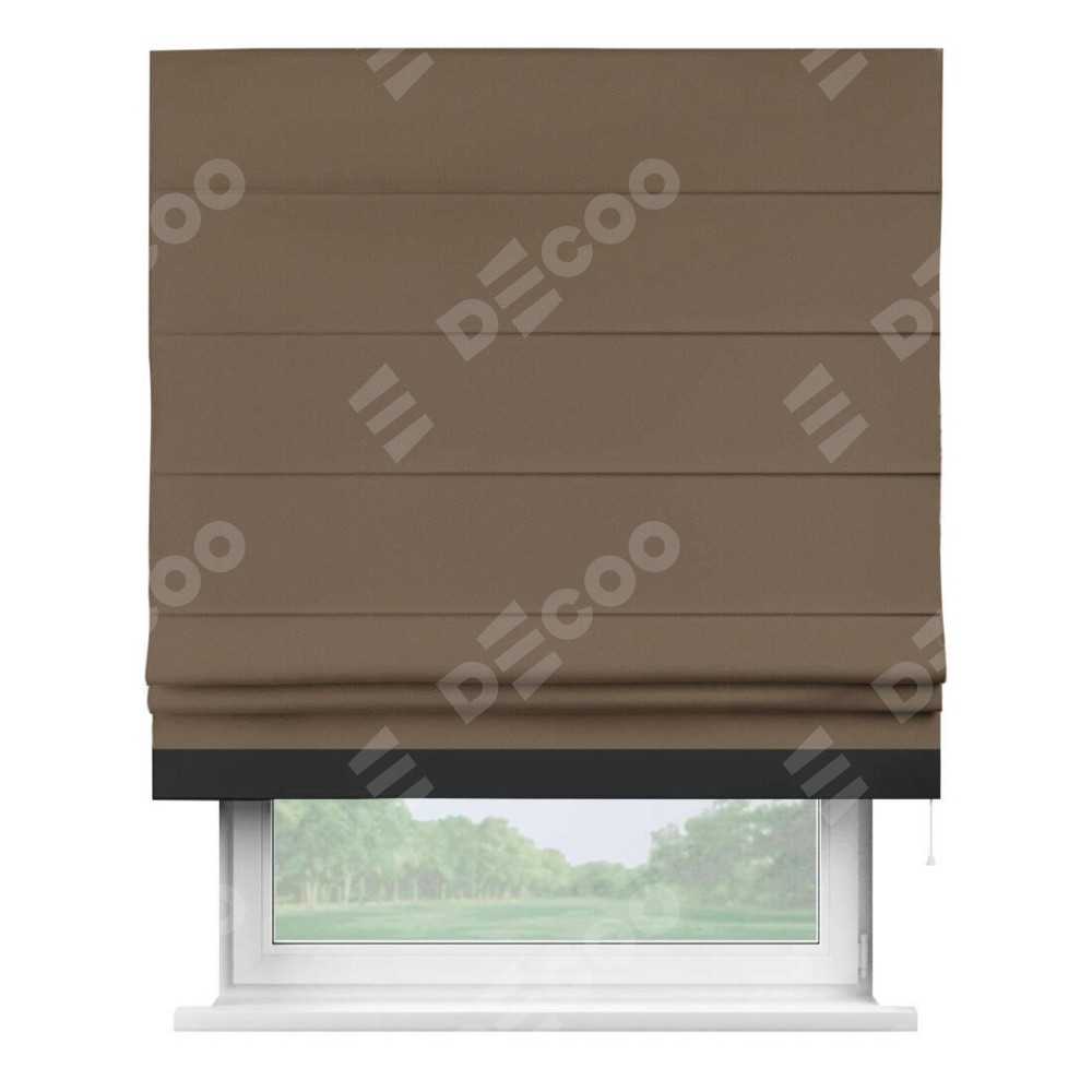Римская штора «Кортин» для проема, блэкаут однотонный коричневый с кантом Джестер