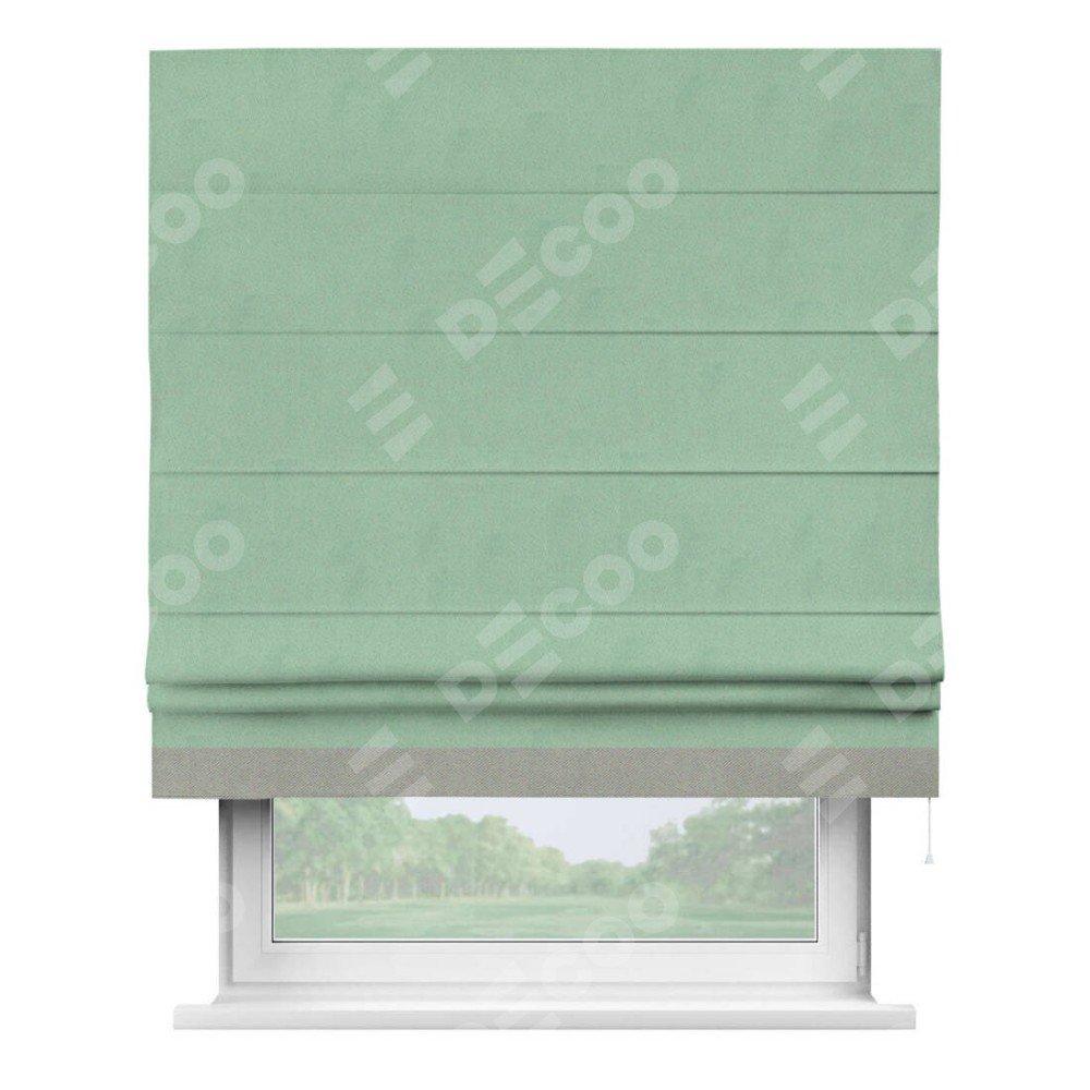 Римская штора «Кортин» для проема, блэкаут однотонный ментоловый с кантом Джестер