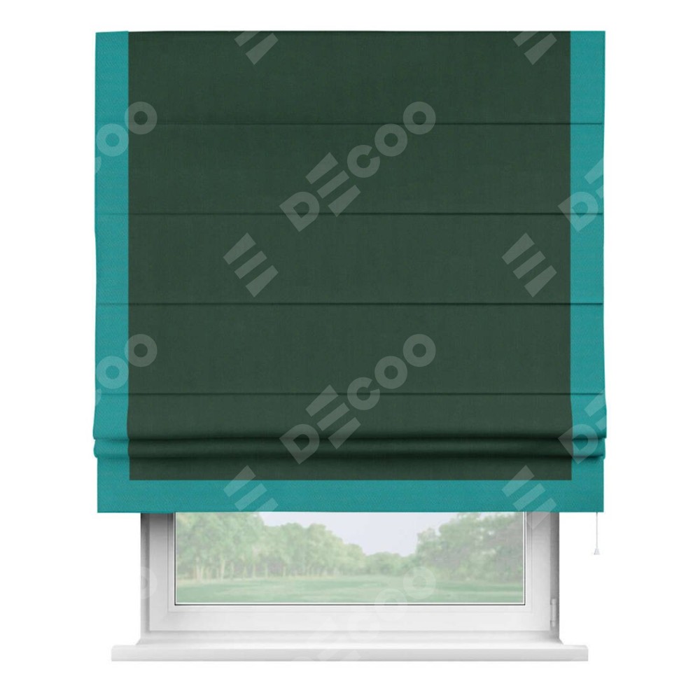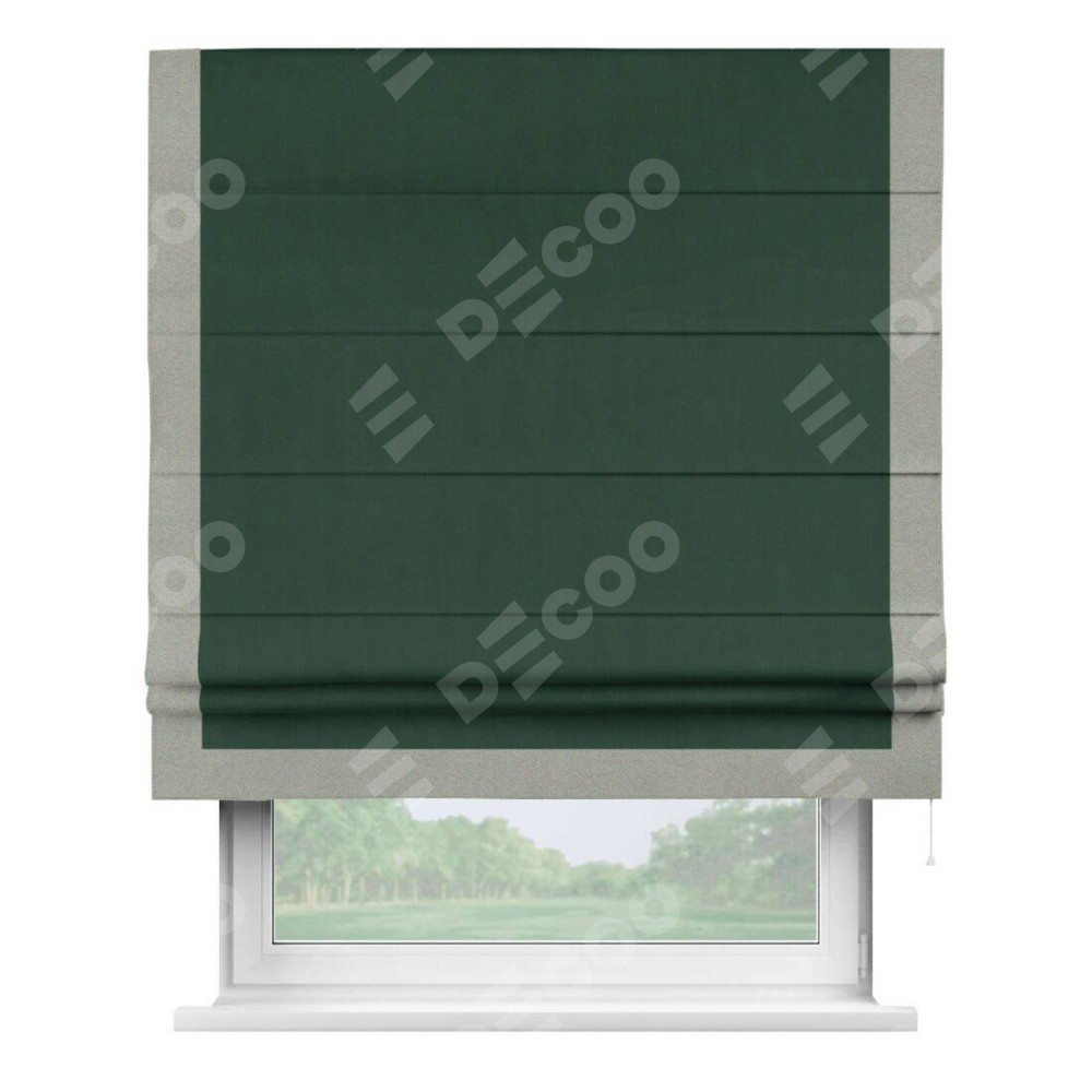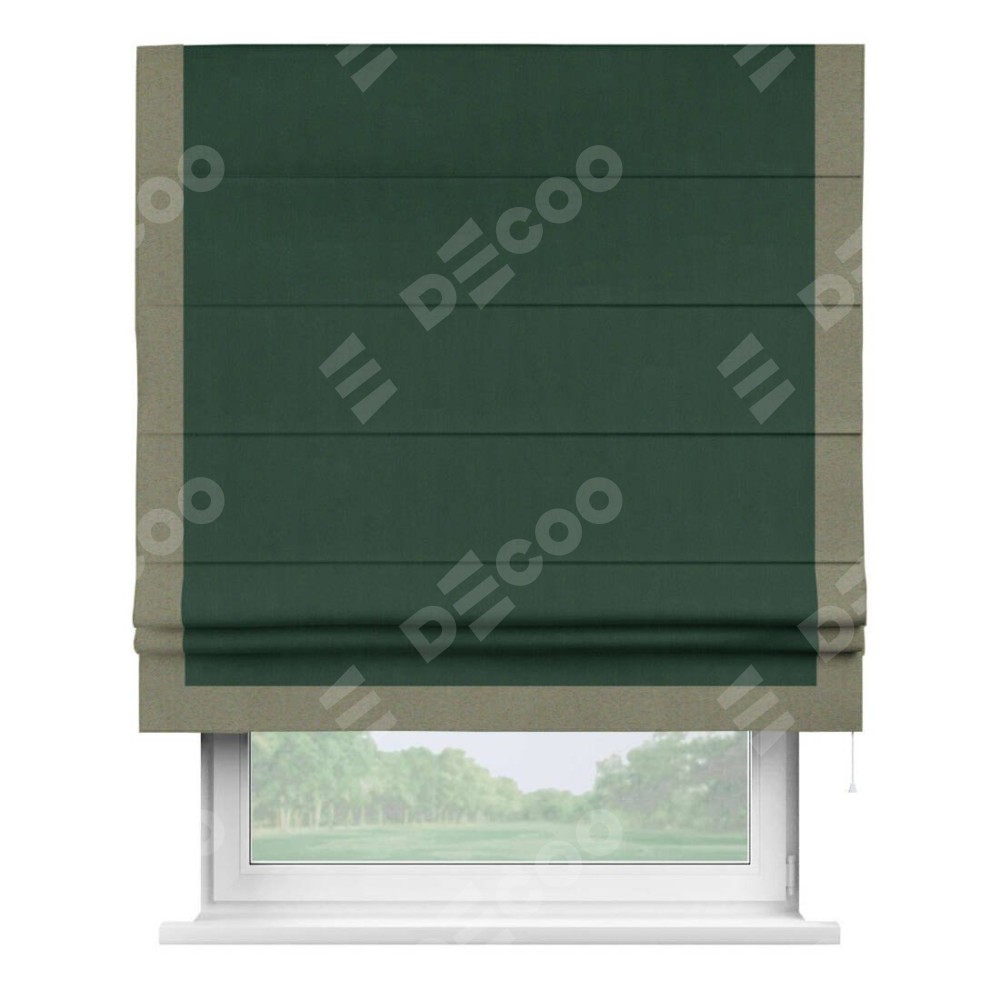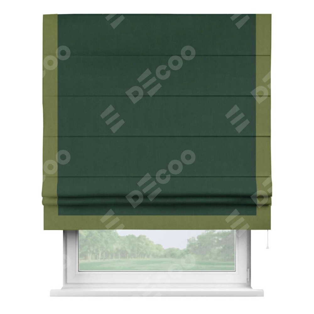 Римская штора «Кортин» для проема, блэкаут однотонный зелёный с кантом Виктория