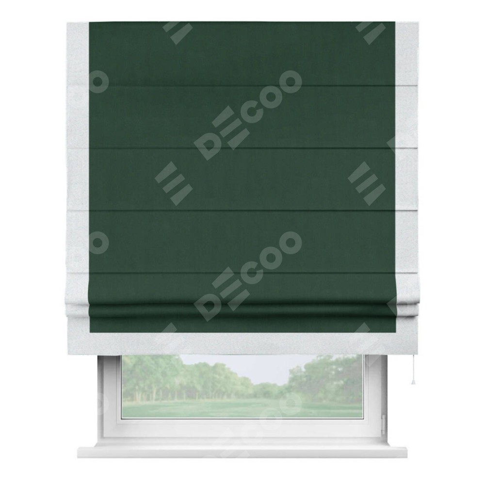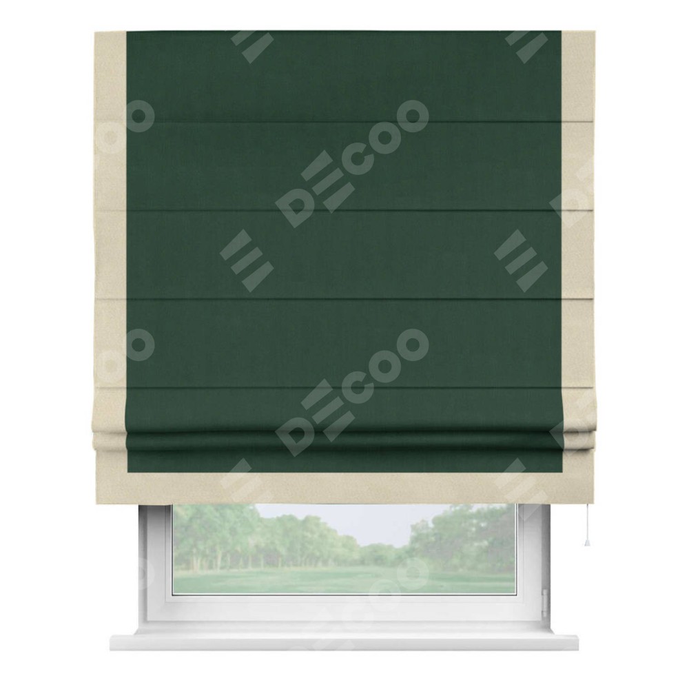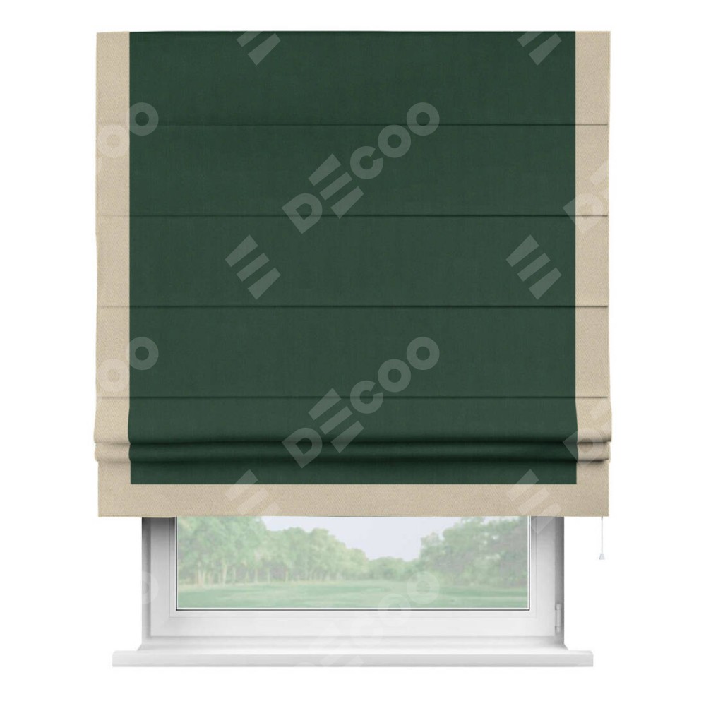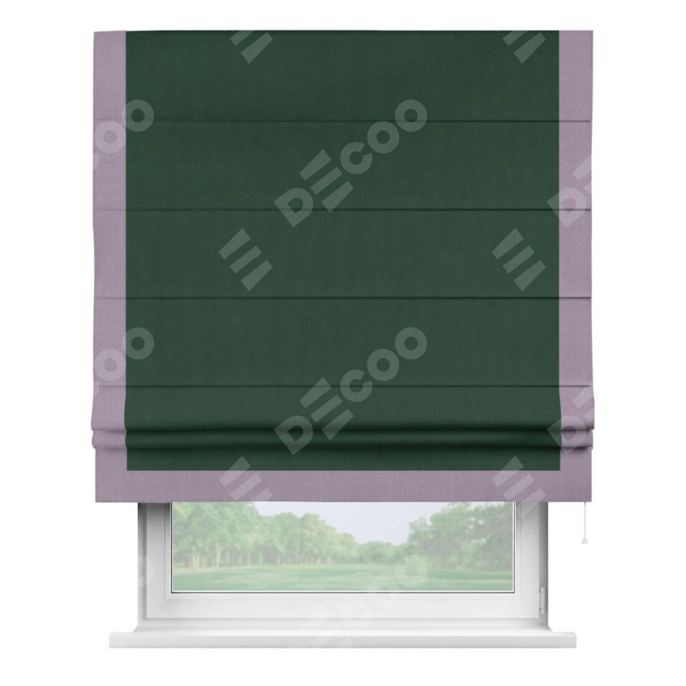 Римская штора «Кортин» для проема, блэкаут однотонный зелёный с кантом Виктория