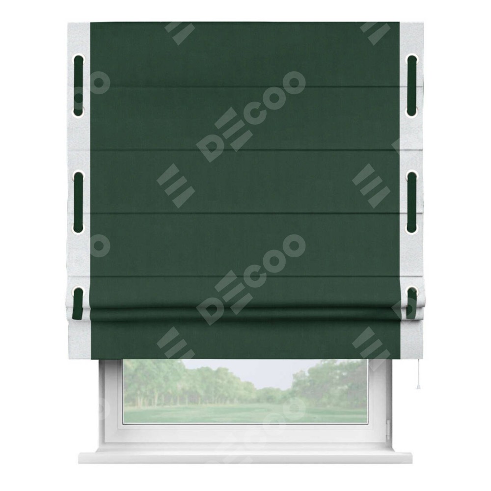 Римская штора «Кортин» для проема, блэкаут однотонный зелёный с кантом Стрим Дуо (люверсы с пояском)