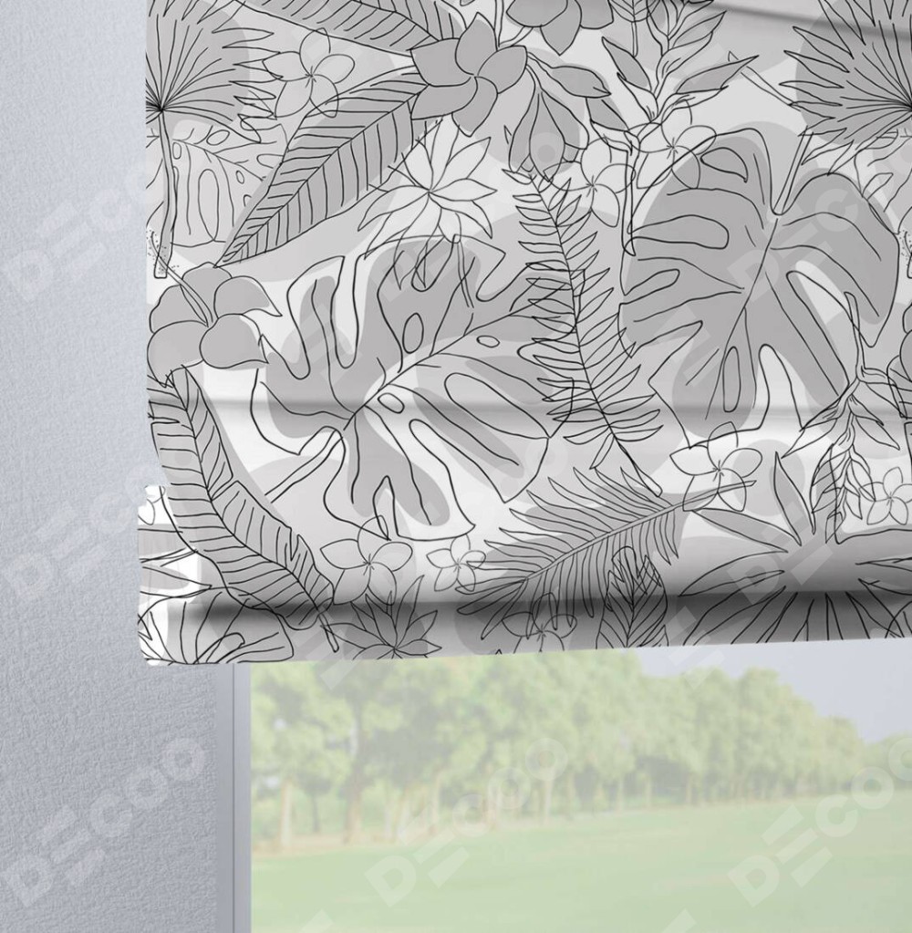 Римская штора производителя «Cortin», используется для проёма, пошита из ткани блэкаут с нанесением сублимационной печати «Тропический лес». Данная модель пошита на петлях, комплектуется на выбор круглым карнизом и подходит для монтажа на стену. Римская штора на петлях имеет простую систему регулировки высоты, отличительным преимуществом данной модели является простой способ монтажа. Достаточно повесить ее на трубу и штора готова!