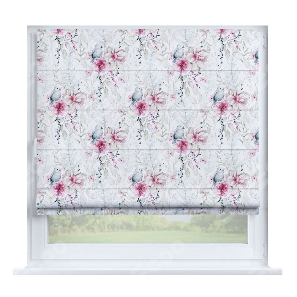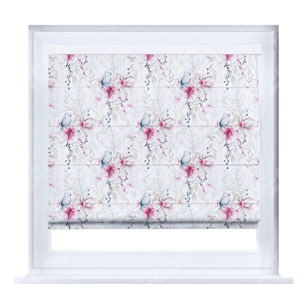 Римская штора производителя «Cortin», устанавливается на створку окна, пошита из ткани блэкаут с нанесением сублимационной печати «Мелодия цветов». Штора шьётся по индивидуальным размерам, для данного типа римской шторы возможная ширина от 35 до 150 см., высота до 250 см.