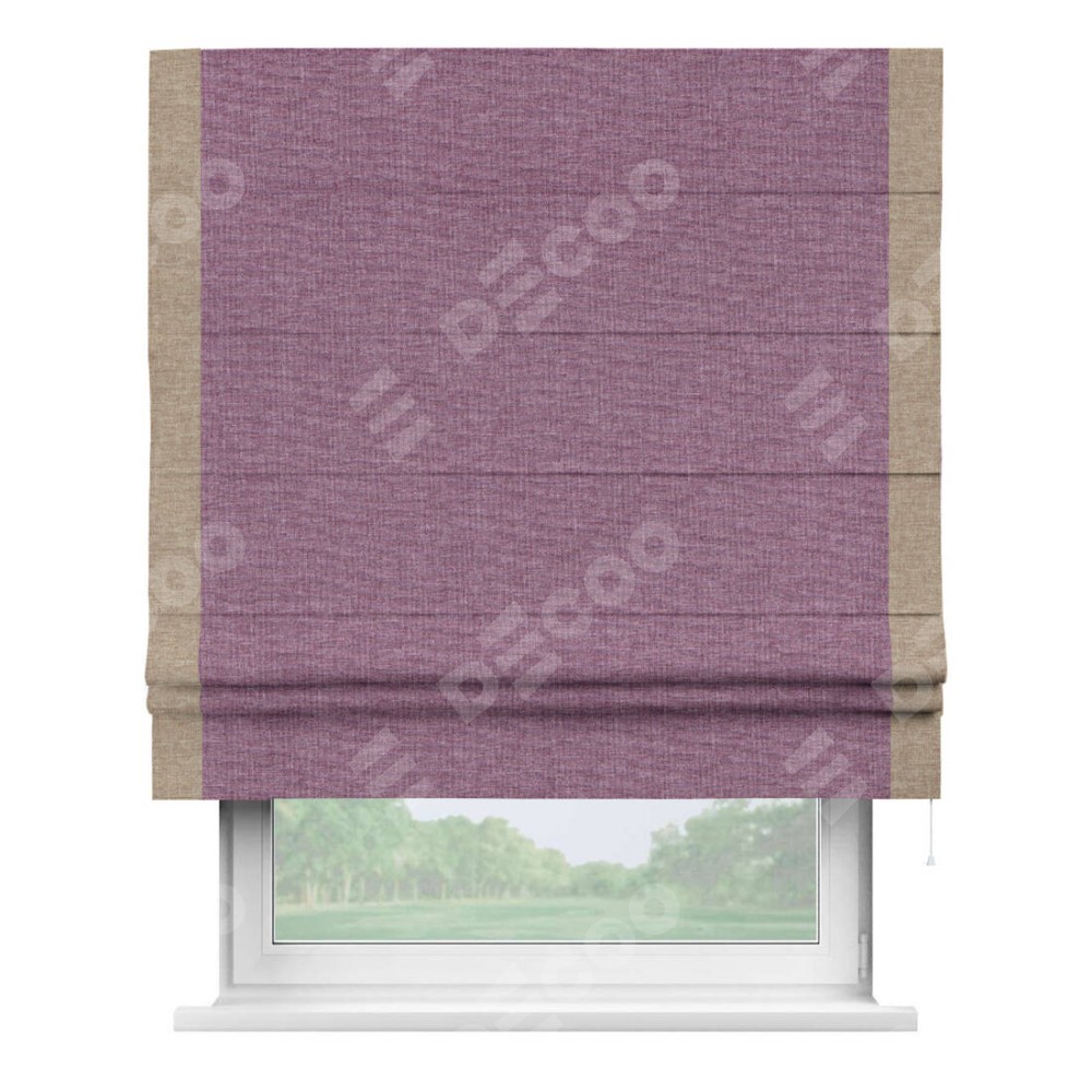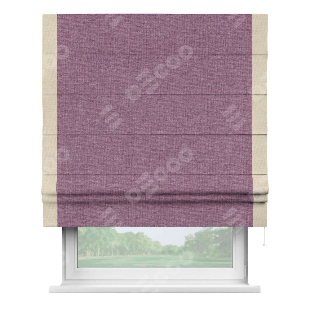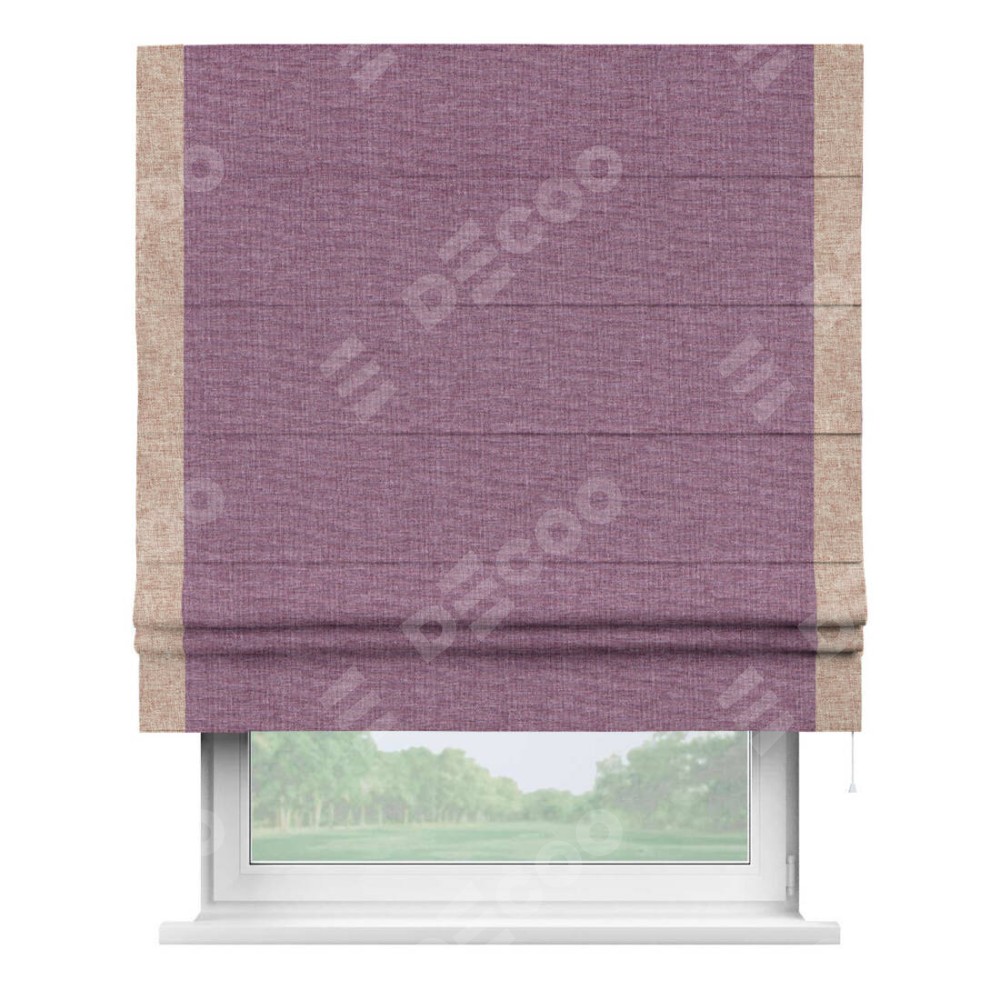 Римская штора производителя «Cortin», используется для проёма, пошита из ткани лён кашемир розовая пудра, артикул 21620. Отделка шторы кантом «Стрим Дуо», ткань для канта используется из льна разной расцветки на выбор. Имеет универсальный механизм и подходит для монтажа: на потолок, на стену и в нишу.