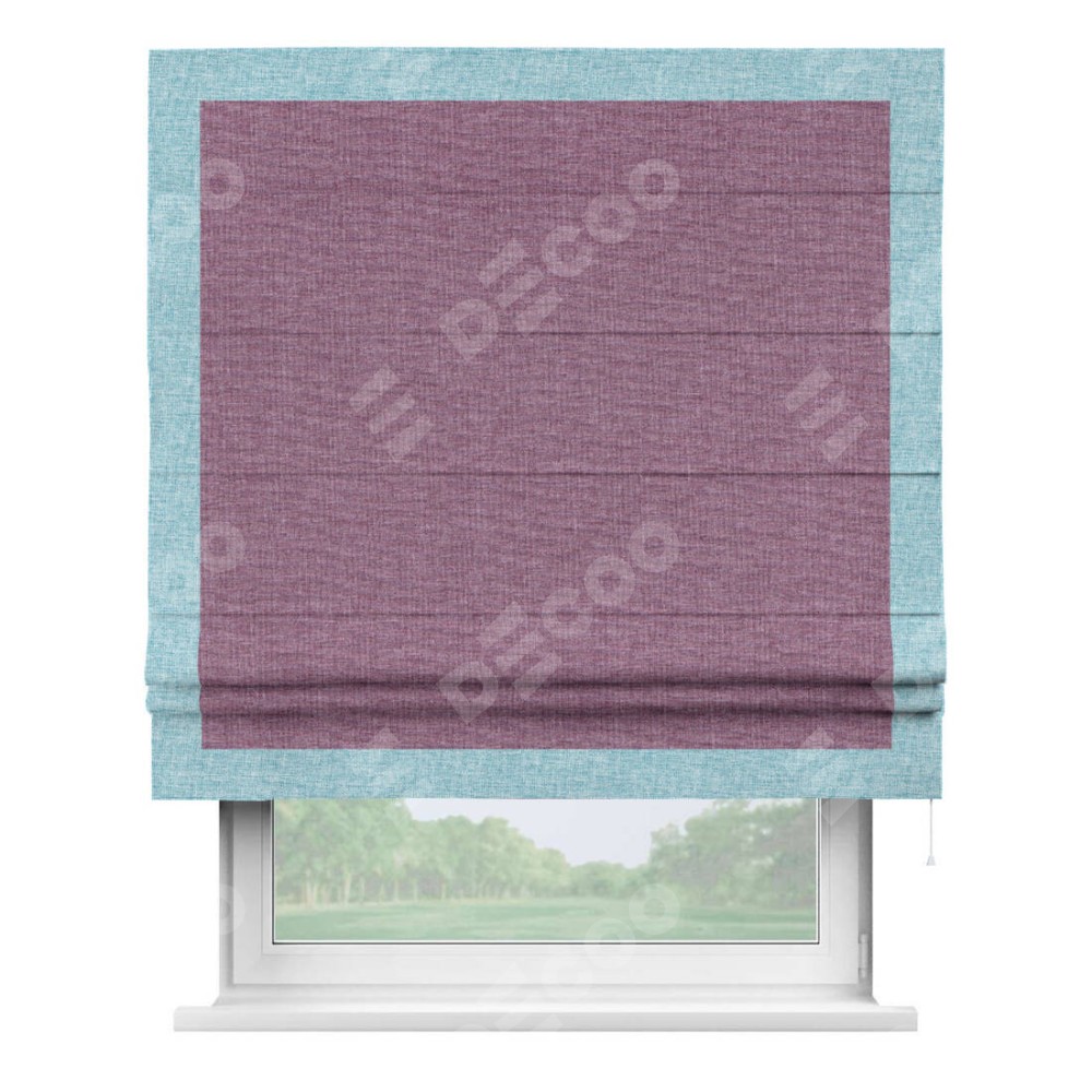 Римская штора «Кортин» с кантом Чесс, для проема, ткань лён кашемир сиреневый