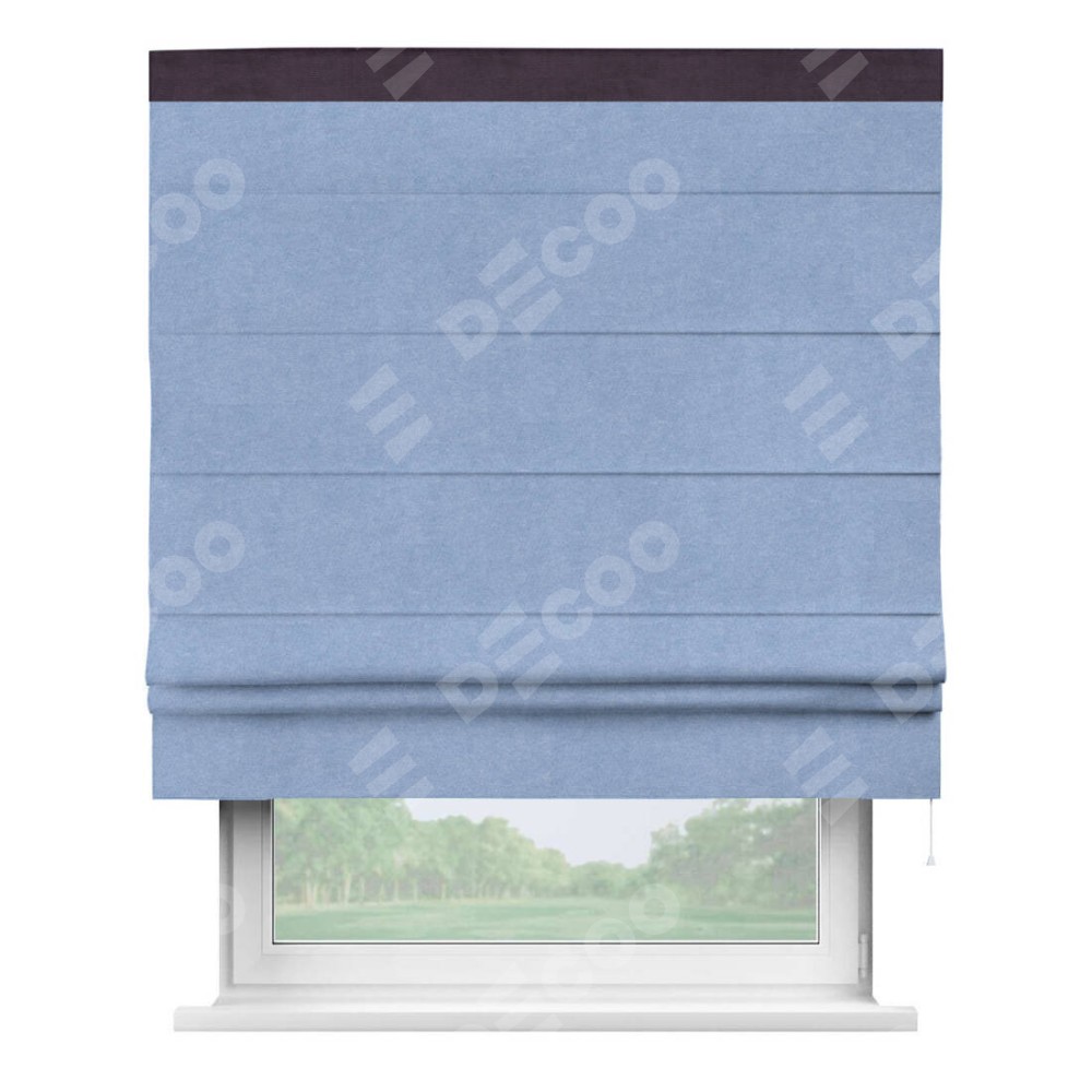 Римская штора «Кортин» для проема, вельвет васильковый с кантом Кинг