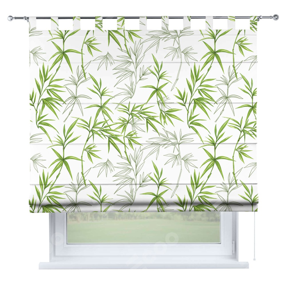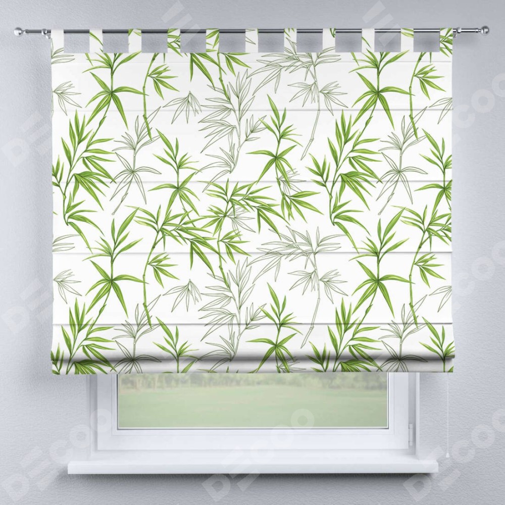 Римская штора производителя «Cortin», используется для проёма, пошита из ткани блэкаут с нанесением сублимационной печати «Зелёный бамбук». Данная модель пошита на петлях, комплектуется на выбор круглым карнизом и подходит для монтажа на стену. Римская штора на петлях имеет простую систему регулировки высоты, отличительным преимуществом данной модели является простой способ монтажа. Достаточно повесить ее на трубу и штора готова!
