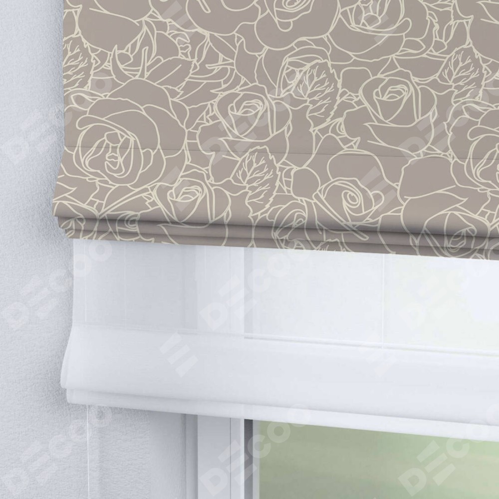 Двойная римская штора «День-ночь» от производителя Cortin предназначена для использования в проёмах. Эта штора уникальна тем, что состоит из двух полотен. На лицевой стороне находится блэкаут с нанесением сублимационной печати «Очарование роз», обеспечивающий эффективное затемнение. В комплект также входит вторая ткань — легкий белый тюль (артикул: V-01), который добавляет изящества и легкости оформлению окна. Кроме того, доступны и другие разновидности ткани тюль, выбор которых доступен по ссылке .