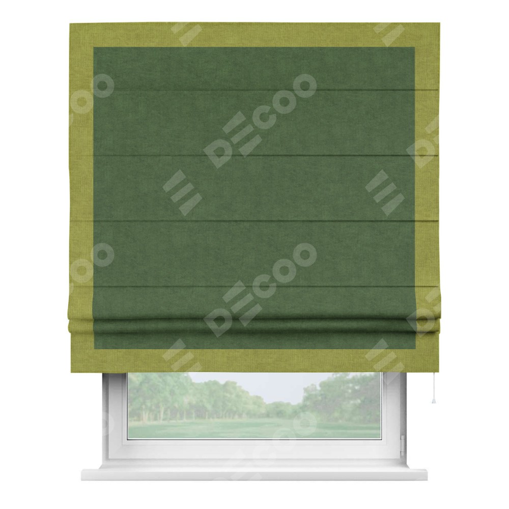 Римская штора «Кортин» для проема, канвас зелёный, с кантом Чесс