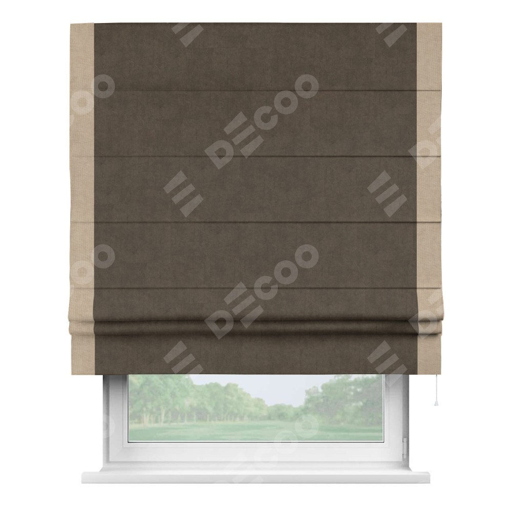 Римская штора «Кортин» для проема, канвас коричневый, с кантом Стрим Дуо