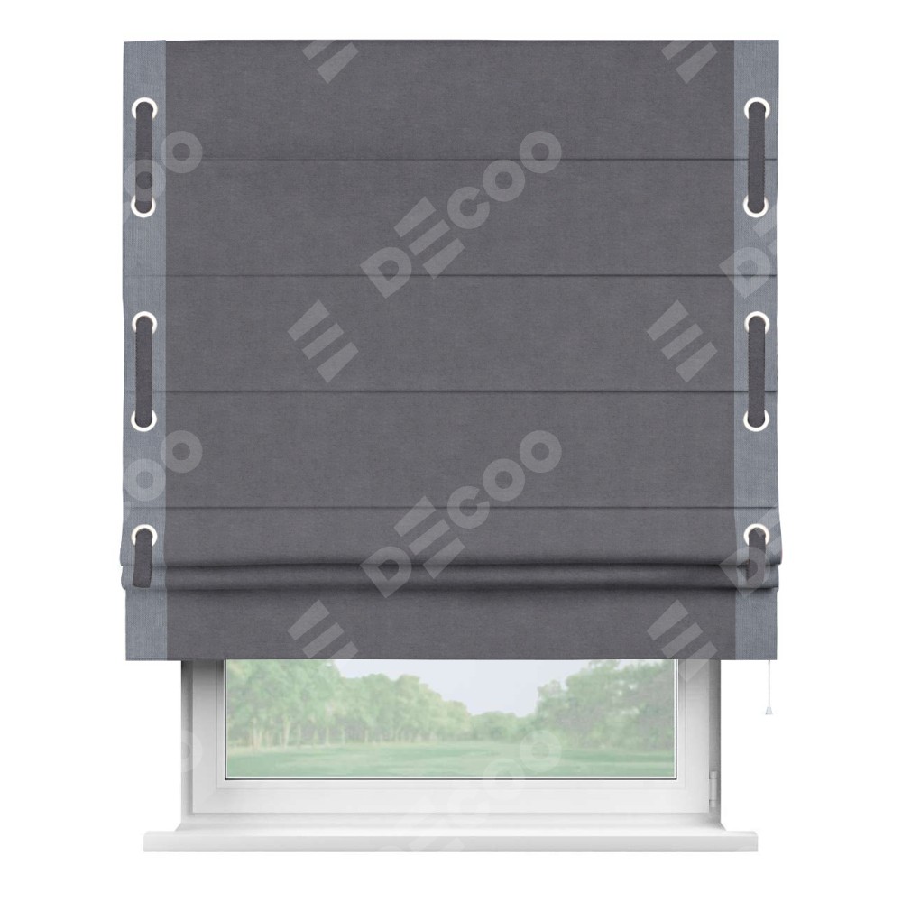 Римская штора «Кортин» для проема, канвас лавандовый, с кантом Стрим Дуо (люверсы с пояском)