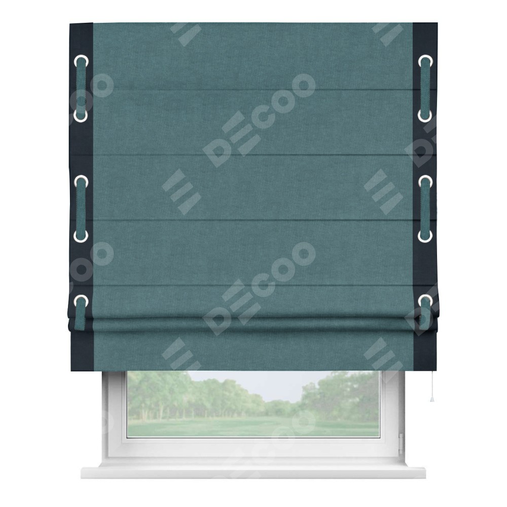 Римская штора «Кортин» для проема, канвас ментоловый, с кантом Стрим Дуо (люверсы с пояском)