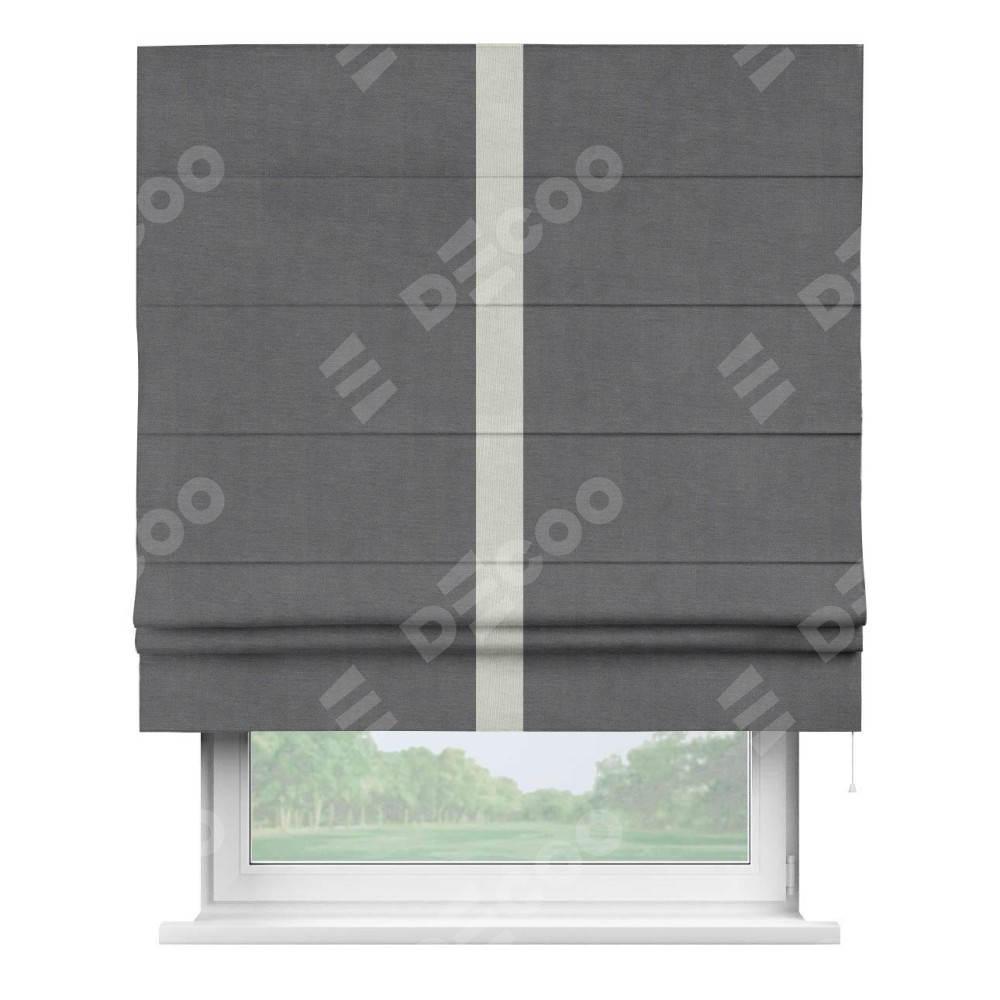 Римская штора «Кортин» для проема, канвас мокрый асфальт, с кантом Хайвэй