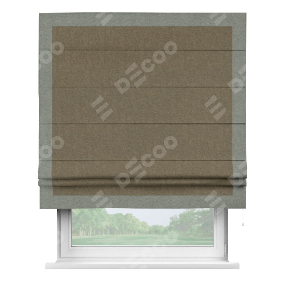 Римская штора «Кортин» для проема, канвас молочный шоколад, с кантом Чесс