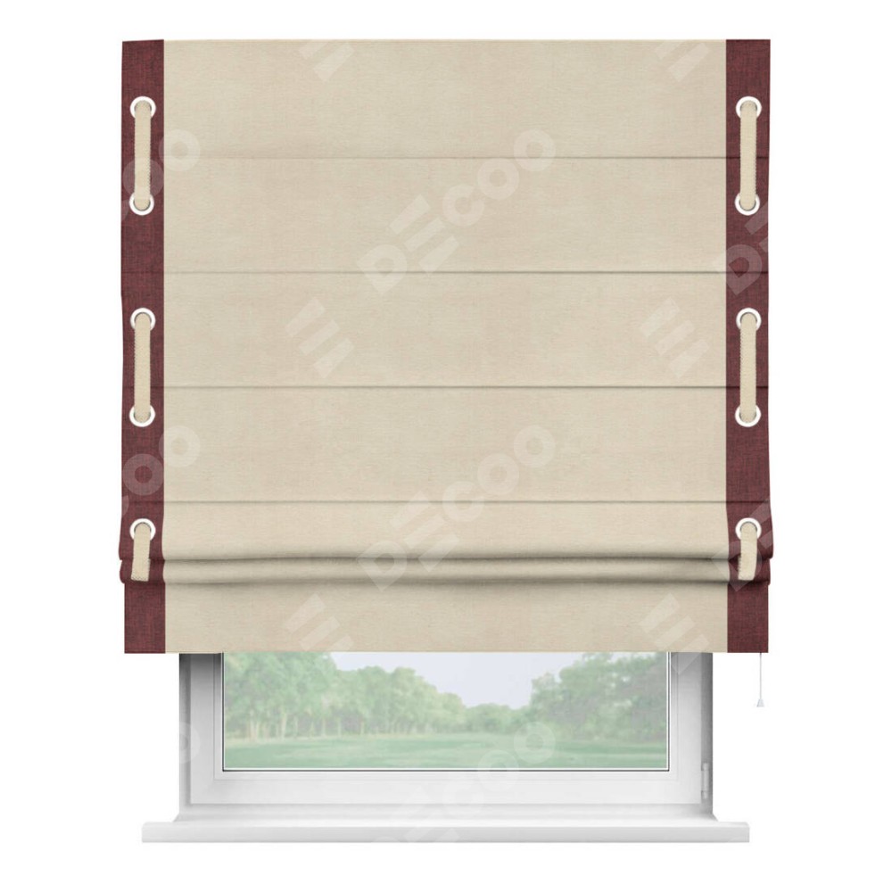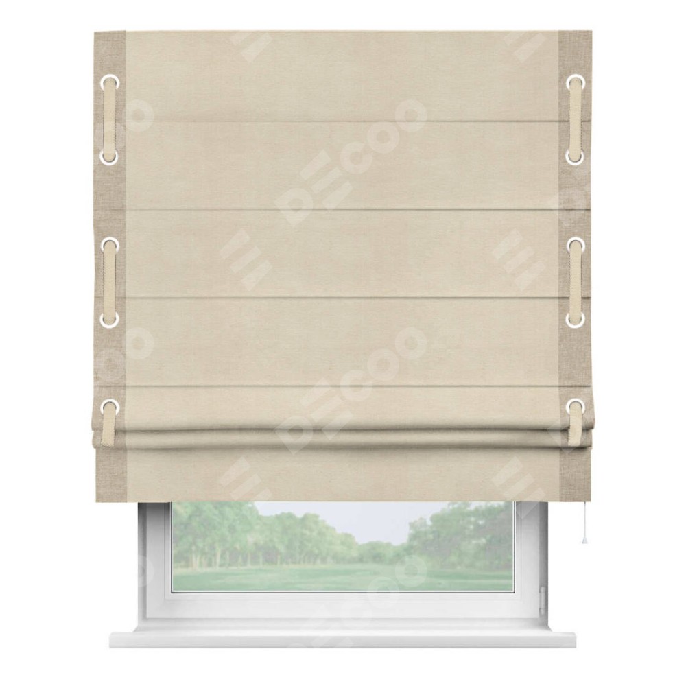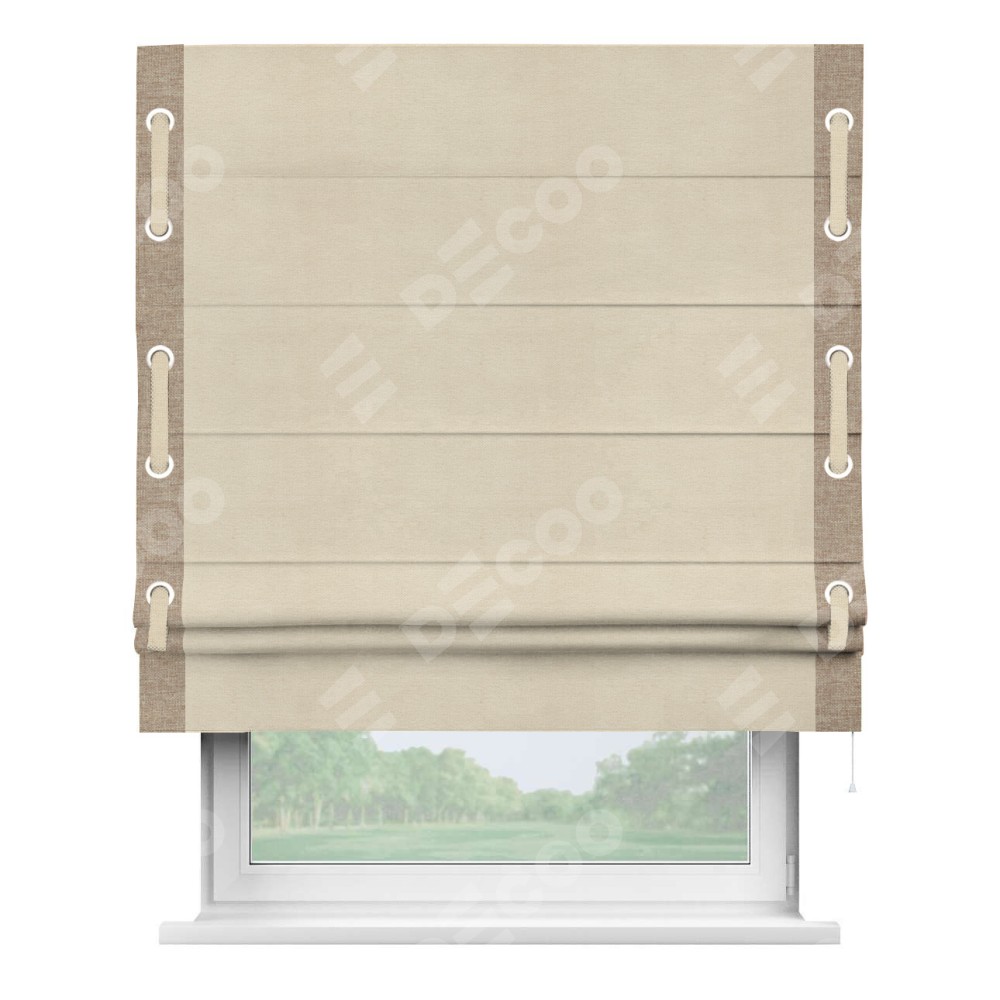 Римская штора «Кортин» с кантом Стрим Дуо (люверсы с пояском), для проема, ткань лён кашемир шампань