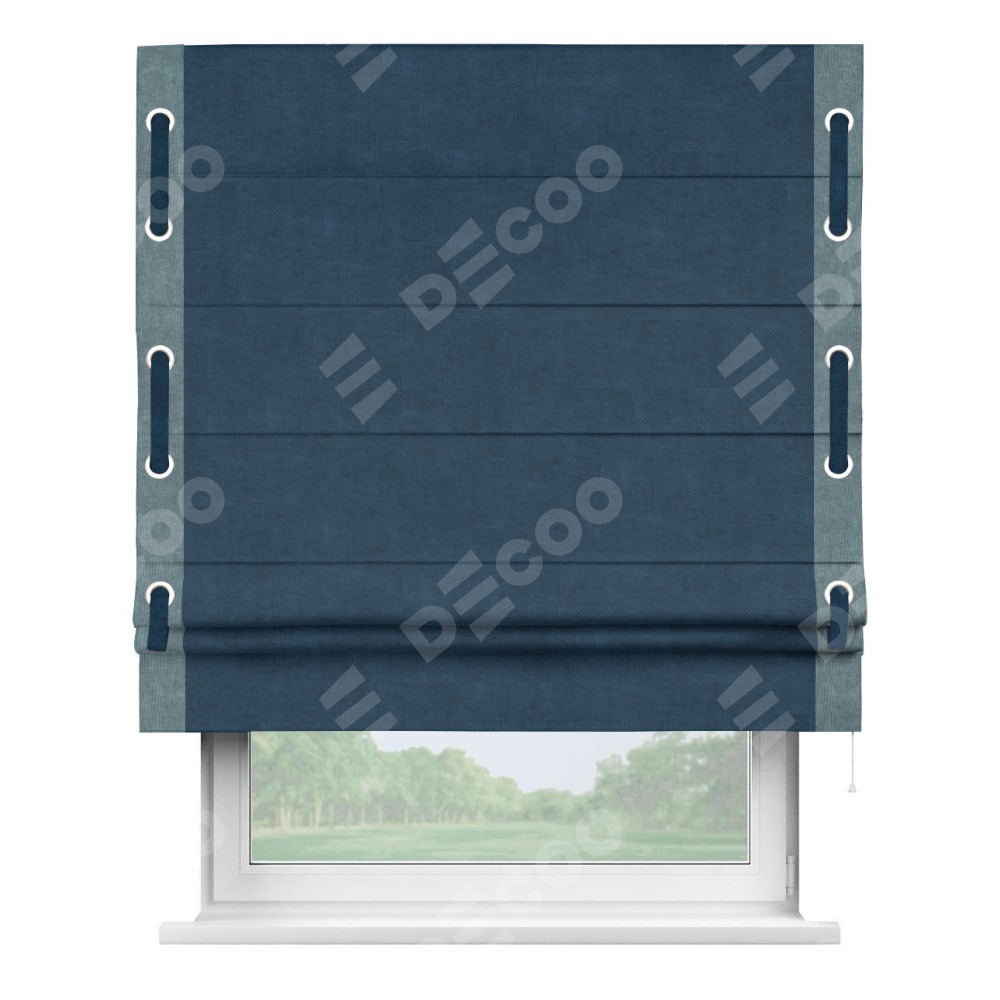 Римская штора «Кортин» для проема, канвас синий, с кантом Стрим Дуо (люверсы с пояском)