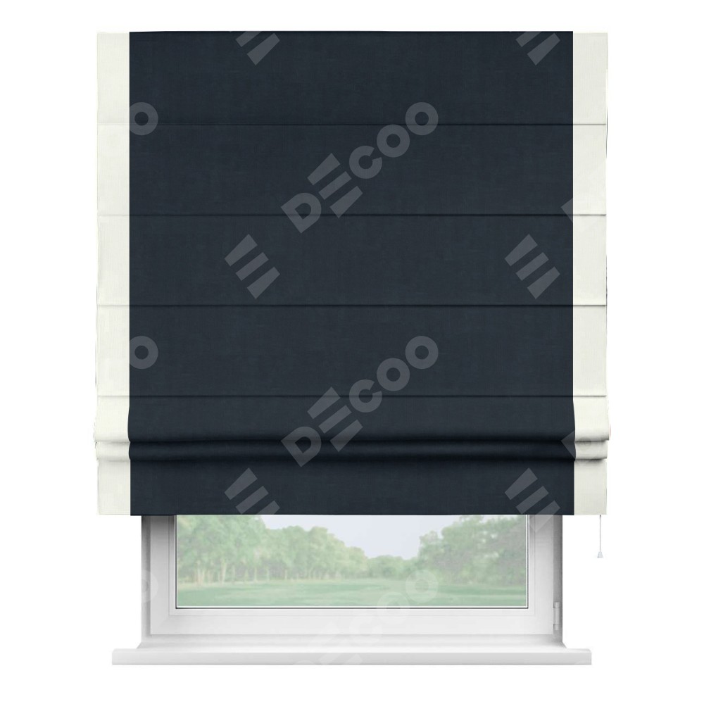 Римская штора «Кортин» для проема, канвас тёмно-синий, с кантом Стрим Дуо