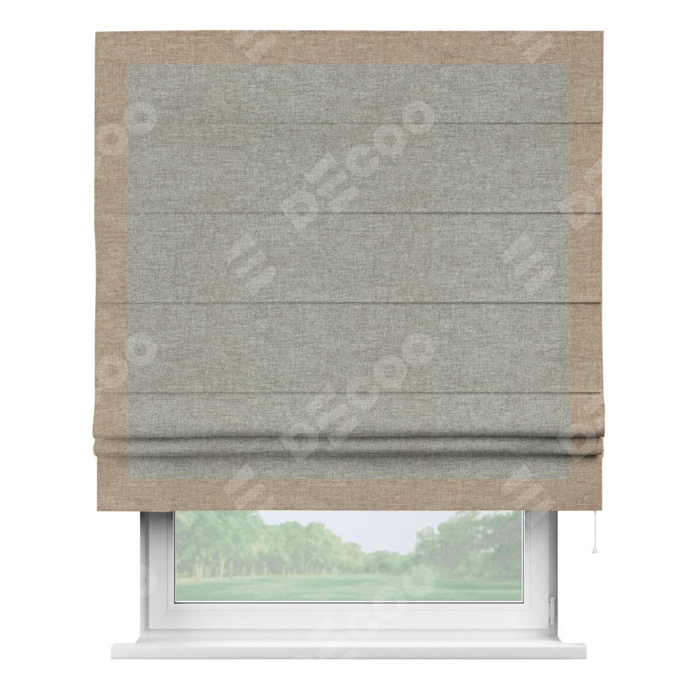 Римская штора «Кортин» с кантом Чесс, для проема, ткань лён кашемир серый