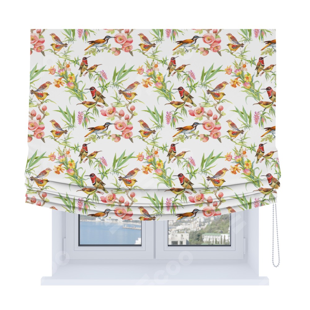 Римская штора Soft с мягкими складками, «Певчие птички»